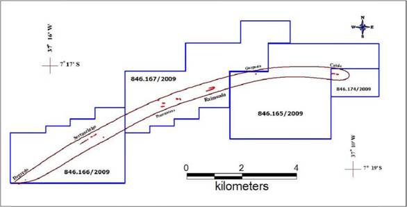 The locations of Gold Hills Mining Ltda.’s operations in Brazil.