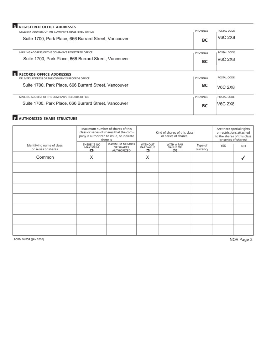Pursuant to the Business Corporations Act (Alberta) and the Business Corporations Act (British Columbia), Shareholders have the right to dissent in respect of the Continuance and the Domestication, respectively, and be paid the fair value of their Common Shares, subject to certain conditions. These dissent rights, and the procedures for their exercise, are described in the Circular/Prospectus under the headings “Dissent Rights of Shareholders — Alberta” and “Dissent Rights of Shareholders — BC.” Only Registered Shareholders are entitled to exercise rights of dissent. Failure to comply strictly with the dissent procedures described in the Circular/Prospectus will result in the loss or unavailability of any right of dissent. Shareholders whose Common Shares are registered in the name of a broker, custodian, nominee or other intermediary (“Non-Registered Shareholders”) who wish to dissent should be aware that ONLY REGISTERED SHAREHOLDERS ARE ENTITLED TO DISSENT IN RESPECT OF THE CONTINUANCE OR THE DOMESTICATION. Non-Registered Shareholders (or Beneficial Shareholders) should contact their broker, investment dealer, bank or other nominee in order to exercise dissent rights.