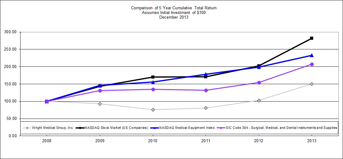 101 | | The following materials from Wright Medical Group, Inc. Annual Report on Form 10-K for the year ended December 31, 2013 formatted in XBRL (Extensible Business Reporting Language): (1) the Consolidated Balance Sheets; (2) Parenthetical Data to the Consolidated Balance Sheets; (3) the Consolidated Statements of Operations; (4) Parenthetical Data to the Consolidated Statements of Operations; (5) the Consolidated Statements of Comprehensive Income; (6) Parenthetical Data to the Consolidated Statements of Comprehensive Income; (7) the Consolidated Statements of Cash Flows; (8) the Consolidated Statements of Changes in Stockholders’ Equity; and (9) Notes to Consolidated Financial Statements. |