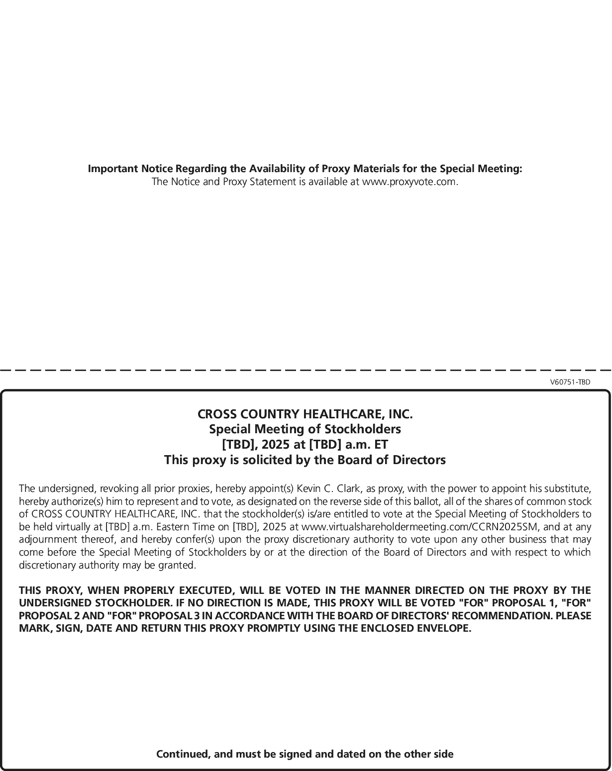 Cross Country stockholders of record as of [  ], 2025 will be able to participate in the special meeting by visiting www.virtualshareholdermeeting.com/CCRN2025SM and entering the 16-digit control number included on your proxy card or voting instruction card that accompanied your proxy materials.