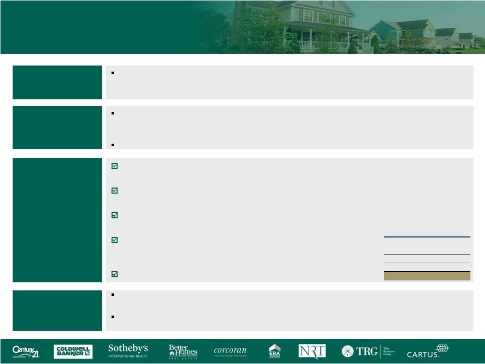 Realogy Balance sheet and liquidity remain strong, with continued focus on