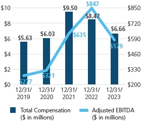 | (4) | This amount represents the net adjustments to Adjusted EBITDA, as decided by the Talent and Compensation Committee for bonus calculation and payout only. For the purposes of determining in connection with the bonus calculation and payout, the Talent and Compensation Committee excluded the expense associated with the payout of bonuses, the impact of acquisitions that were not included in the Company’s operating plan and certain increases to the Company’s legal expense accruals not contemplated by its 2022 annual operating plan. |