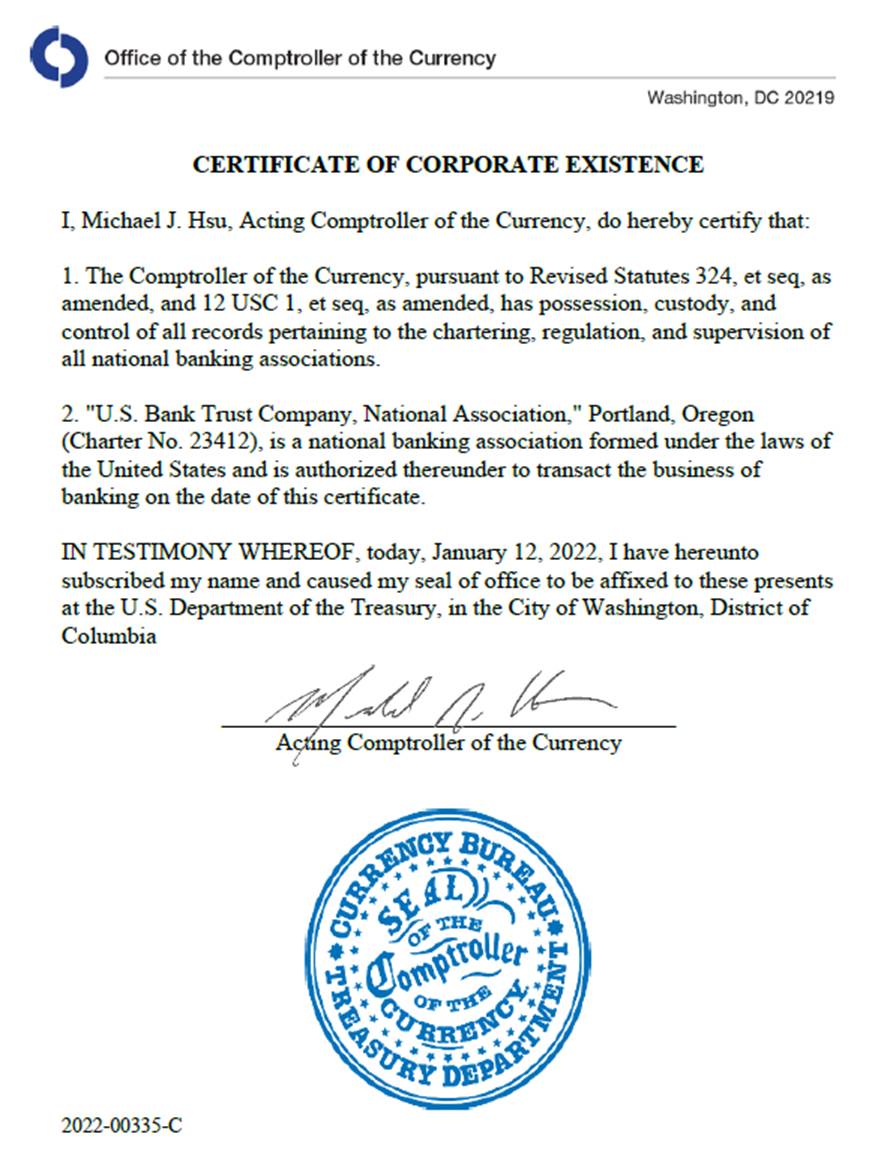 U.S. BANK TRUST COMPANY, NATIONAL ASSOCIATION