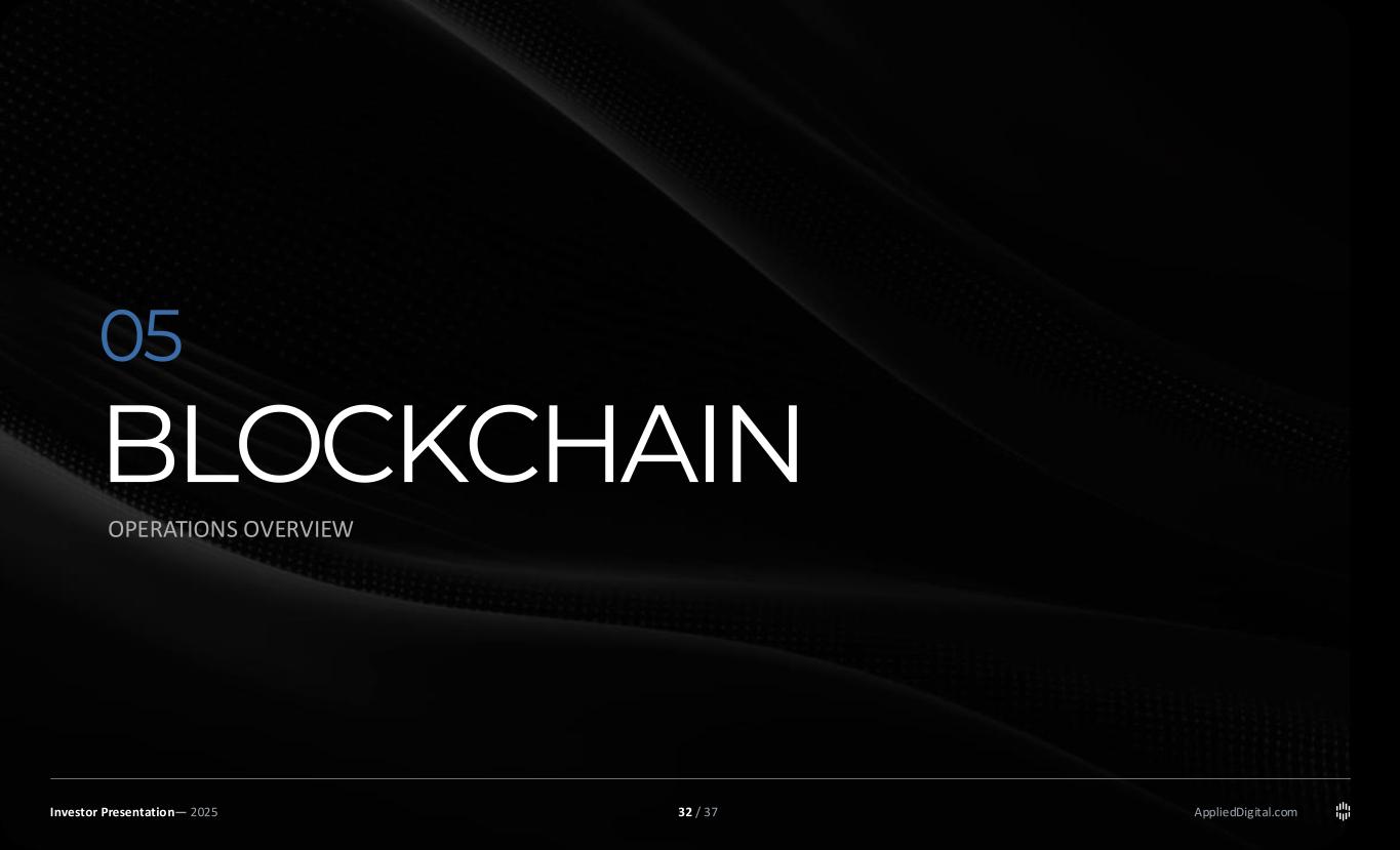 BLOCKCHAIN 05 AppliedDigital.com OPERATIONS OVERVIEW Investor Presentation— 2025 32 / 37