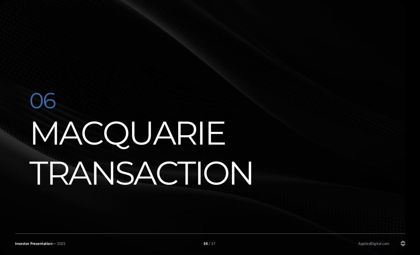MACQUARIE TRANSACTION 06 AppliedDigital.comInvestor Presentation— 2025 34 / 37