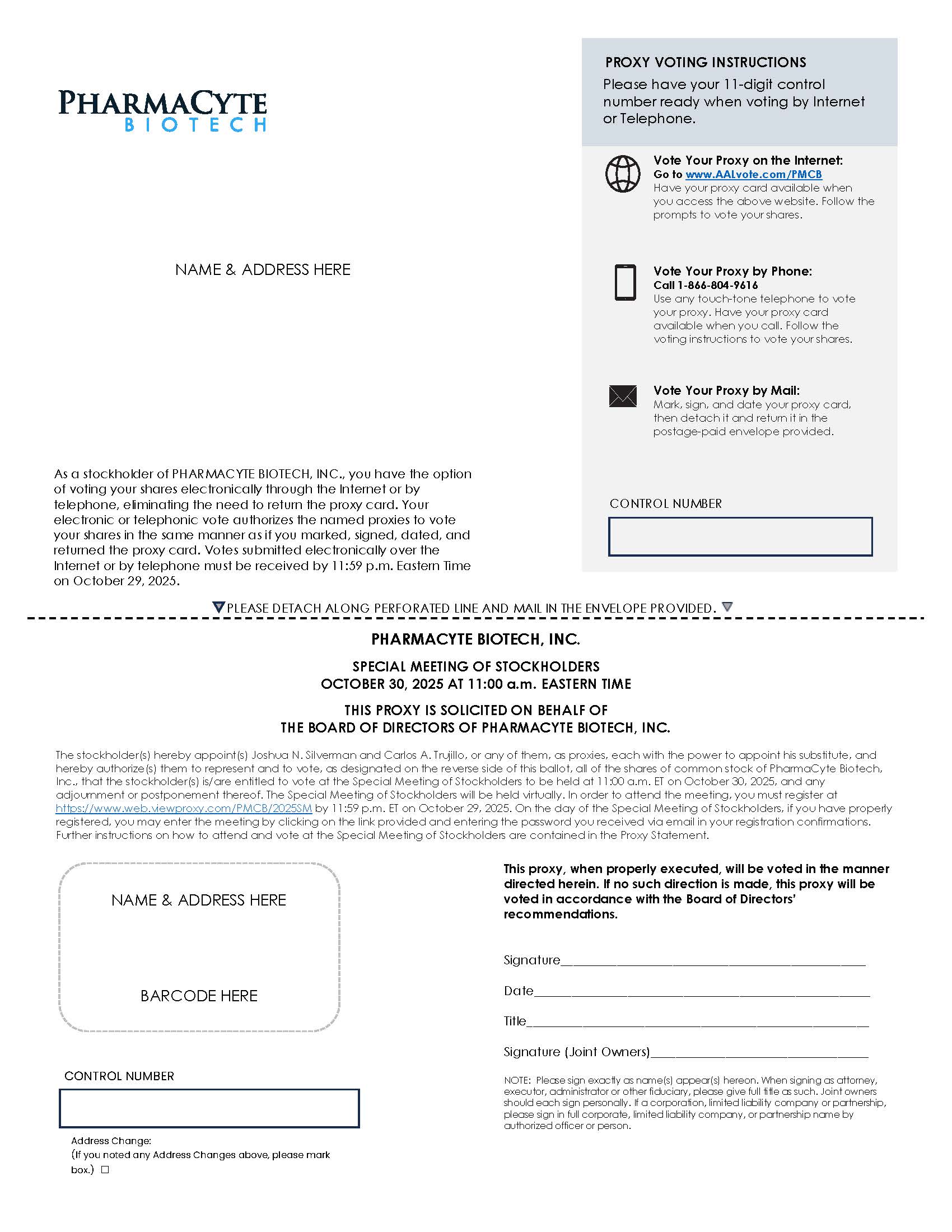 You are cordially invited to attend a special meeting of stockholders of PharmaCyte Biotech, Inc. (“PharmaCyte”) to be held at 11:00 a.m. ET on Thursday, October 30, 2025.