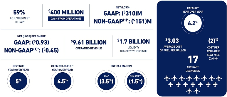 Adjusted debt to capitalization ratio is a non-GAAP financial measure which we believe is relevant in assessing the Company’s overall debt profile. Adjusted debt includes aircraft operating lease liabilities, in addition to total debt and finance lease obligations. Adjusted capitalization represents total equity plus adjusted debt. Investors should consider this non-GAAP financial measure in addition to, and not as a substitute for, our financial measures prepared in accordance with GAAP.