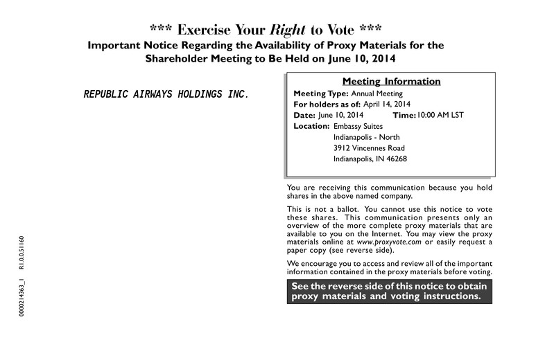 REPUBLIC AIRWAYS HOLDINGS INC.