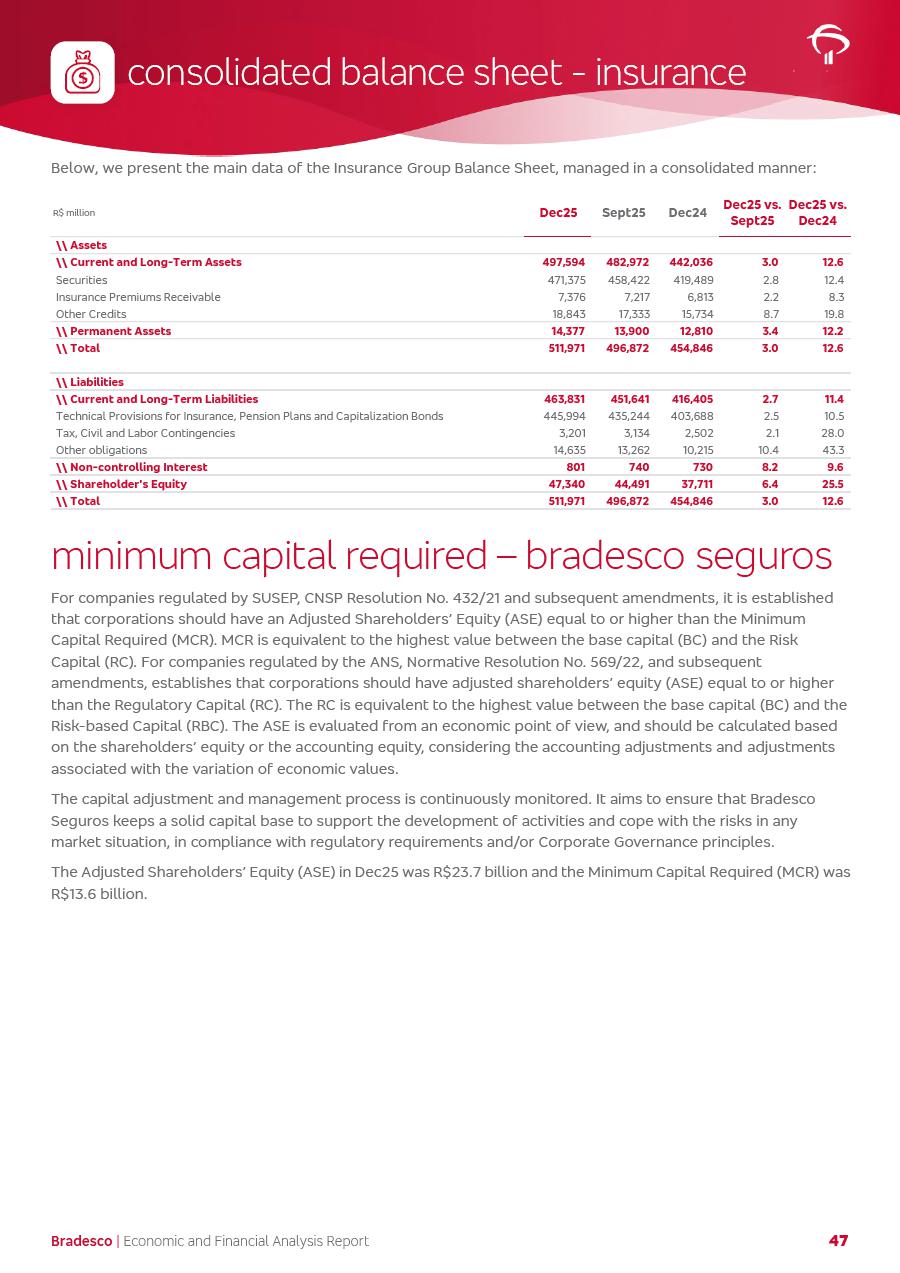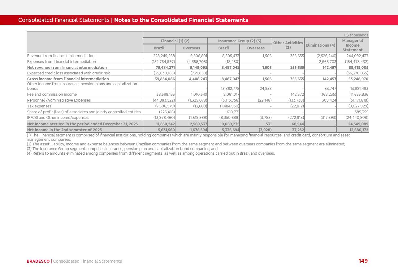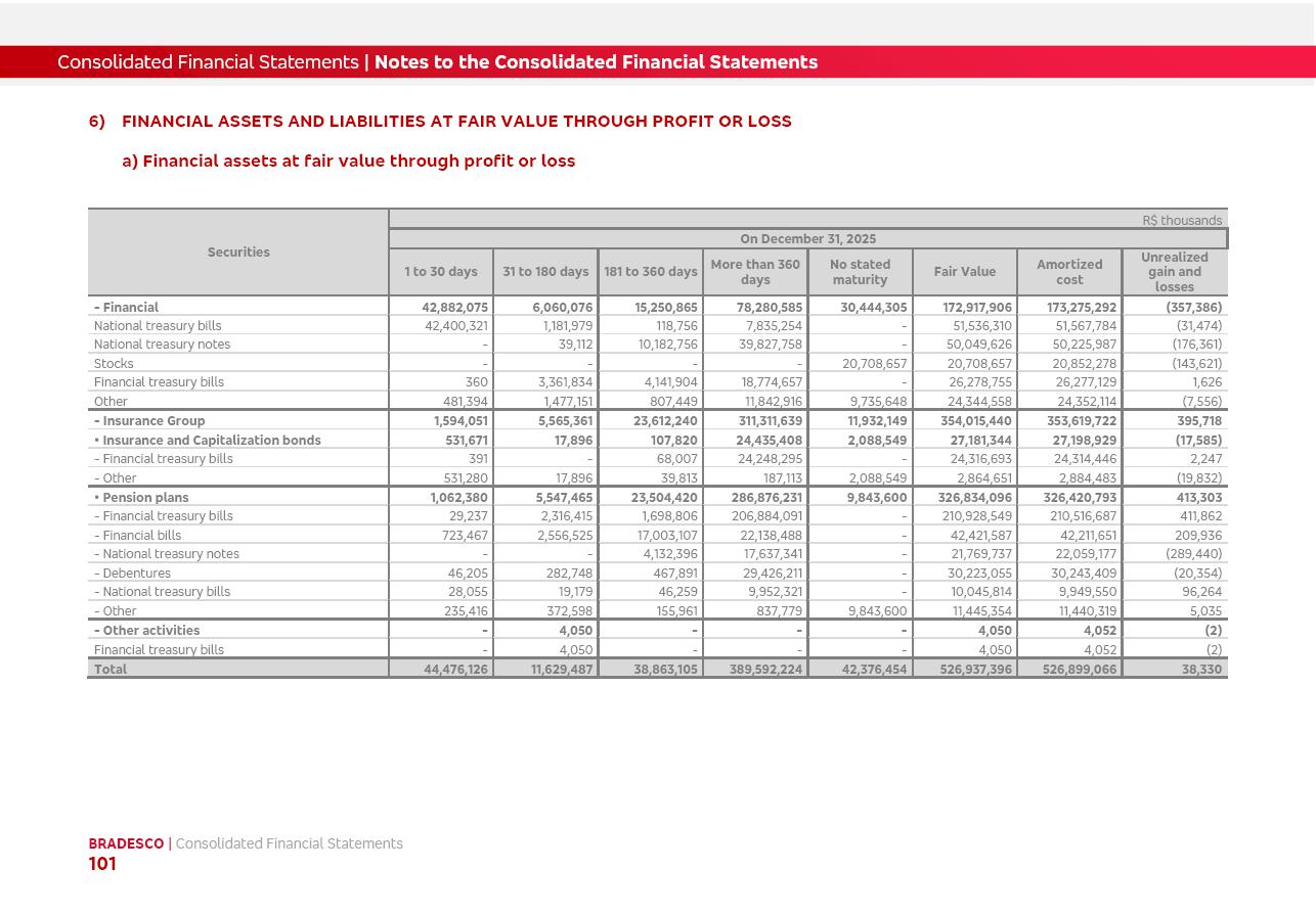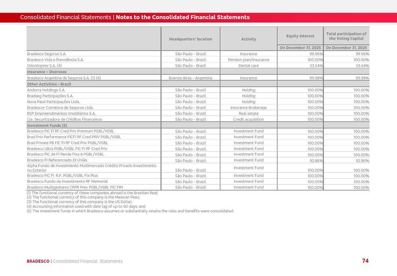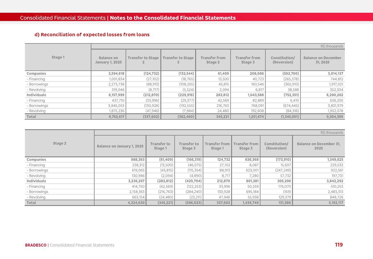 click on the items below to navigate through the document: 4Q 25 managerial analysis of results management report consolidated financial statements videoconference commenting on the results February 6th at 8:30 AM (US Eastern Time) economic and financial analysis reportBradesco | Economic and Financial Analysis Report 3 Table of Contents Managerial Analysis of Results 5 press release 6 highlights 4Q25 7 recurring net income statement 8 net interest income 9 funding sources 10 loan portfolio 11 expenses with expanded loan loss provisions 16 loan indicators 17 fee and commission income 19 operating expenses 21 Bradesco Seguros 22 basel 27 guidance, indicators & economic perspectives 28 Additional Information 29 corporate strategy | customer-centric 30 NPS 31 our people 32 sustainability 33 digital in figures | BIA 34 Bradesco Principal 35 Bradesco Expresso 36 international operations | My Account 37 Bradesco Bank 38 Ágora Investimentos 39 Digio 40 service points, clients and market share 41 return to shareholders 42 additional information 43 selected information 45 consolidated balance sheet – Bradesco 46 consolidated balance sheet – Insurance 47 statement of income – managerial vs. recurring | BRGAAP vs. IFRS comparative 48 Independent Auditor’s Report 49 Consolidated Financial Statements 53 Bradesco | Economic and Financial Analysis Report 4 Some numbers included in this Report have been subjected to rounding adjustments. As a result, some amounts indicated as total amounts in some charts may not be the arithmetic sum of the preceding numbers. Percentage variations not presented in the framework of this report, are related, in their majority, to the low value balances compared with the other periods presented. As of January 2025, we adopted in our Financial Statements the new accounting practices established by CMN Resolutions No. 4,966 and No. 4,975. For management purposes, we kept the information of the previous periods as already disclosed, which do not present relevant differences in the historical analysis of the results. For some credit indicators, when mentioned, we carry out historical data for comparability purposes on a pro-forma basis. In our financial statements the Organization opted for the exemption provided by the Standard not to resubmit comparative information from previous periods resulting from the changes. Managerial Analysis of Results Bradesco | Economic and Financial Analysis Report 6 press release Bradesco remains committed to expand profitability gradually and safely through the accelerated execution of the transformation plan. Our priority is to ensure the sustainability of the business by growing responsibly, keeping the cost of credit under control, investing in the transformation of the Organization, and reinforcing a customer centric approach in all decisions. In 2025, our commercial traction was reflected in impressive revenue growth across all of our core product lines. We maintained our risk appetite, new credit vintages with high quality and delinquency ratios under control. As a result, in 4Q25 we reported a Return on Equity (ROE) higher than our cost of capital, with eight straight quarters of profitability growth. Investments in our transformation have placed temporary pressure on expenses, but they are intended to boost our competitiveness in the short, medium and long term. The integration between "change the bank" and "run the bank" is intensifying, as the benefits of transformation continue to enhance operational performance and make it more sustainable. Net income was R$6.5 billion in 4Q25, resulting in ROAE of 15.2%, generating a profit of R$24.7 billion in 2025 and growth of 26.1% in 2025 vs. 2024. Total revenues topped R$36.1 billion for the quarter, growing 2.9% q/q and 9.8% y/y, driven by the performance of the net interest income and fee and commission income. Net interest income came to R$19.2 billion for the quarter, expanding 2.9% q/q and 13.2% y/y. Client NII reached R$19.1 billion, rising 2.7% q/q and 18.4% y/y, mainly due to the effect of the increase in the loan portfolio and efficiency on the funding margin. Market NII totaled R$126 million in 4Q25, in line with expectations, bringing the full-year figure to R$975 million. The expanded loan portfolio came to R$1.089 trillion, growing 11.0% y/y and 5.3% q/q in December 2025, reflecting our traction in the MSME and Individuals segments, and operations with Large Companies carried out at the end of the year. In December 2025, the delinquency ratio (over 90 days NPL) remained stable. Problem assets in the restructured portfolio fell by R$2.4 billion versus the prior quarter and R$10.5 billion in the annual comparison, while cured assets rose 10.7% q/q and 58.2% y/y. Consequently, stage 3 operations declined throughout 2025, with a 40 bps reduction in the last quarter. The cost of credit retreated slightly from 3.3% in 3Q25 to 3.2% in 4Q25, reflecting the quality of the concession and growth of the loan portfolio over the period. Fee and commission income performed strongly, growing 4.6% q/q and 8.0% y/y. The positive standouts over the quarter included capital market, card income and loan operations. The operational performance from insurance operations generated an income of R$5.6 billion (-1.0% q/q and +2.1% y/y) and net income of R$2.8 billion (10.7% q/q and 10.6% y/y). The ROAE of the insurance company was 24.3% in 4Q25. In 2025, the insurance earnings came to R$10.1 billion. Our efficiency ratio (expenses/revenues) improved by 2.2 p.p. over the year, attributed to a 13.2% increase in revenues and sound management of expenses. In 2025, operating expenses rose by 8.5% while administrative and personnel expenses saw a 5.0% bump, which includes the impact of the collective bargaining agreement of 5.68% and increase in profit-sharing expenditures. Temporary pressures seen throughout the year came mainly from our transformation initiatives and a strategic strengthening of the 