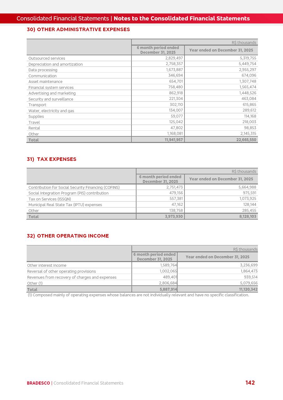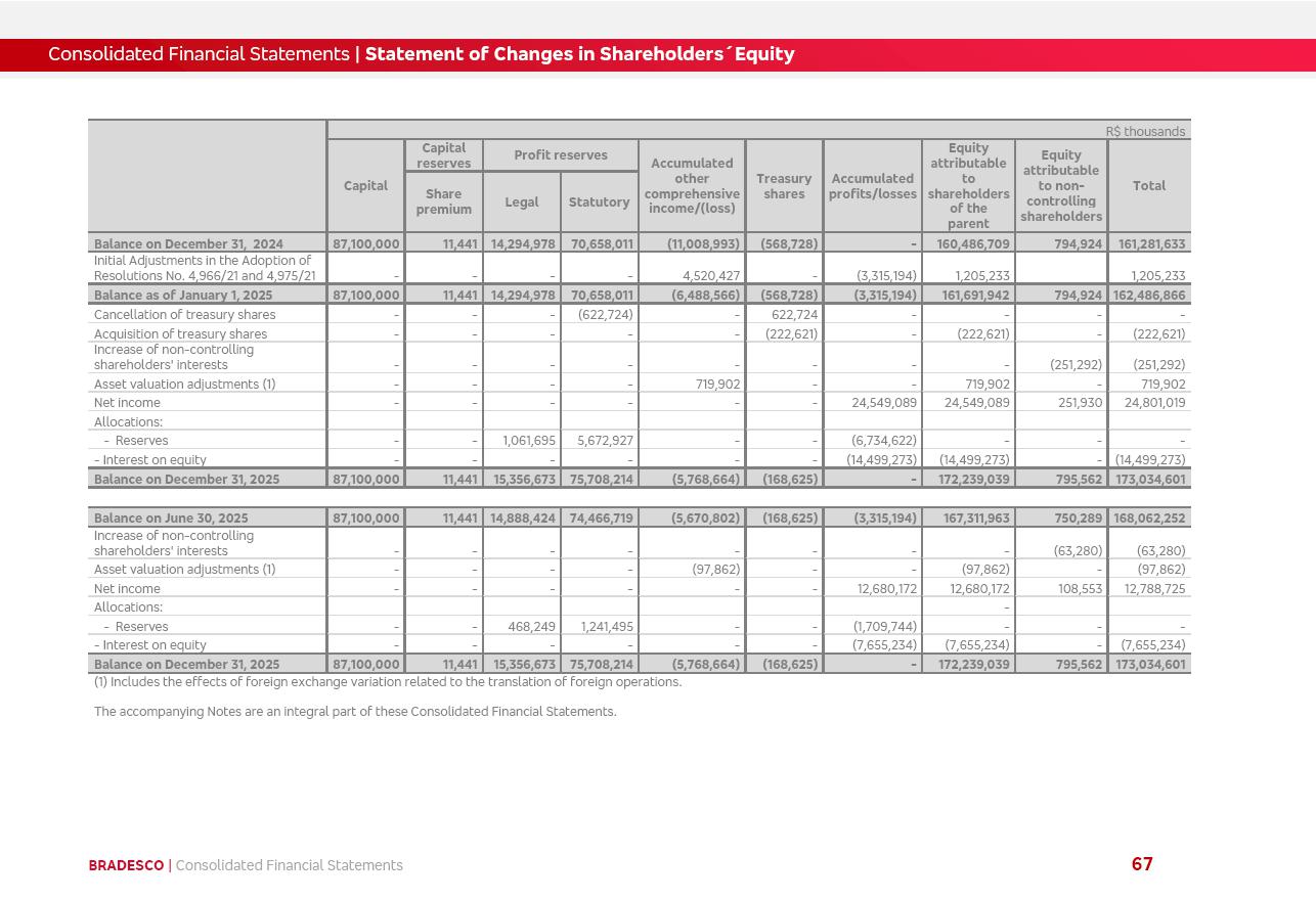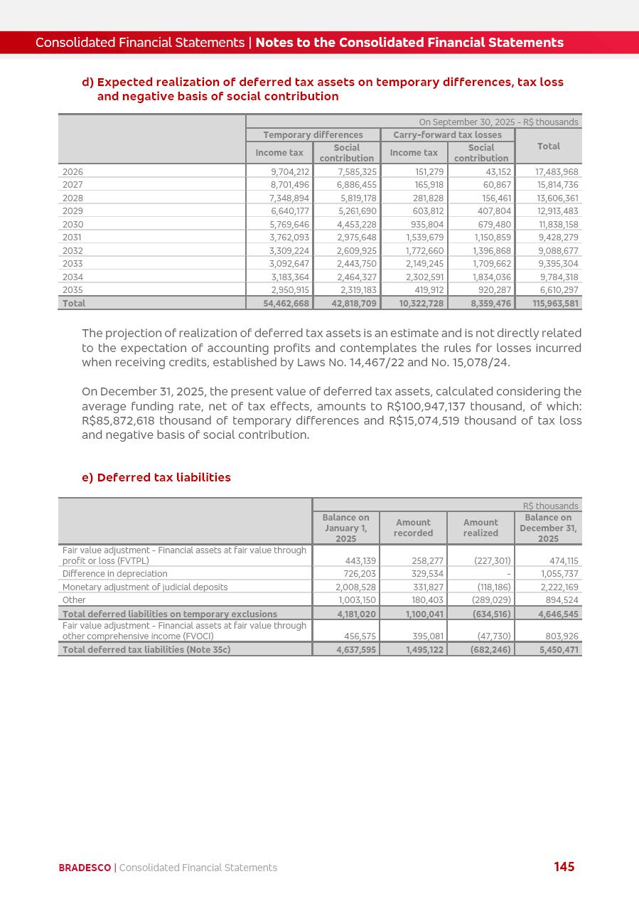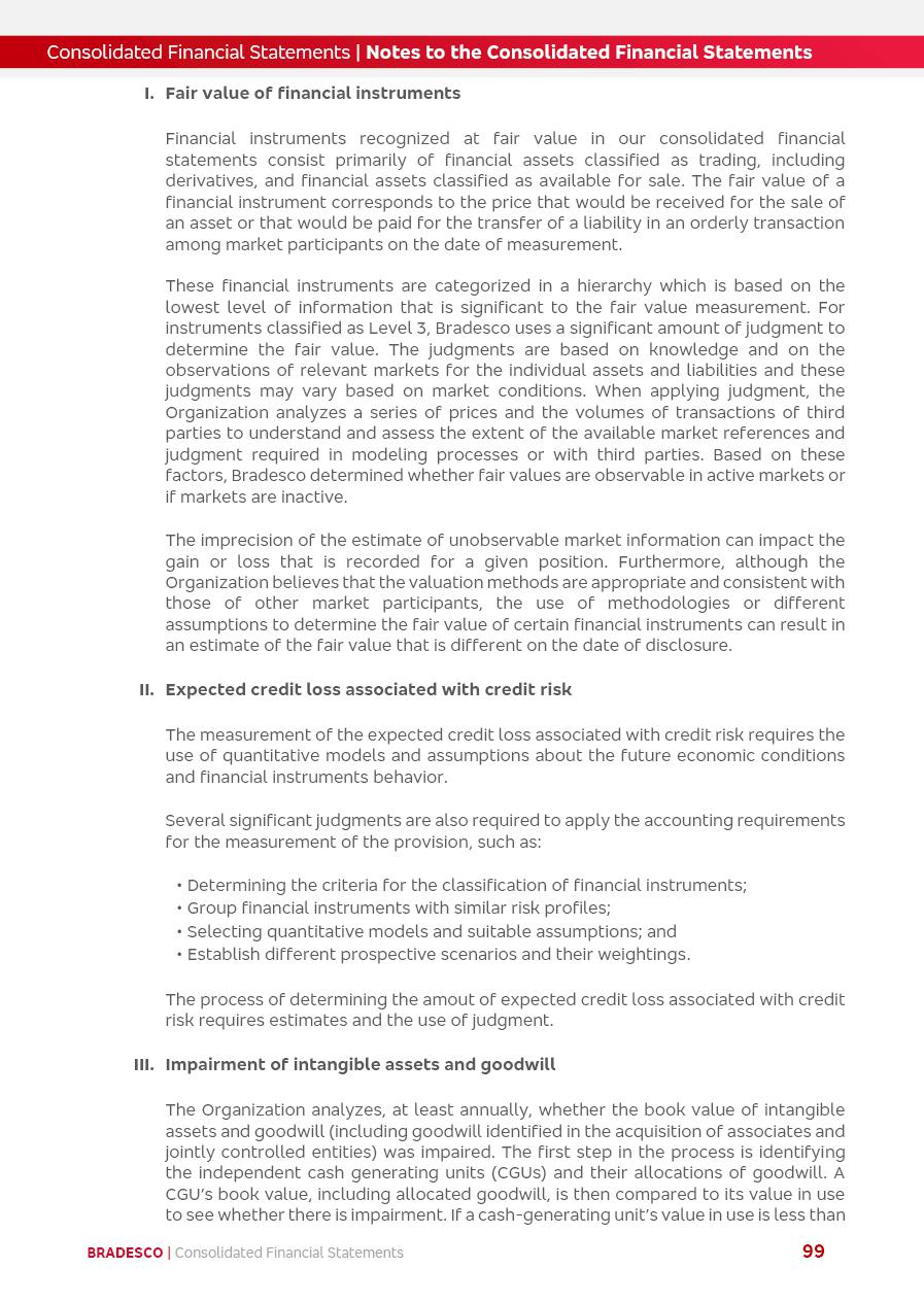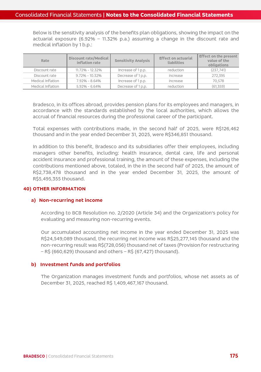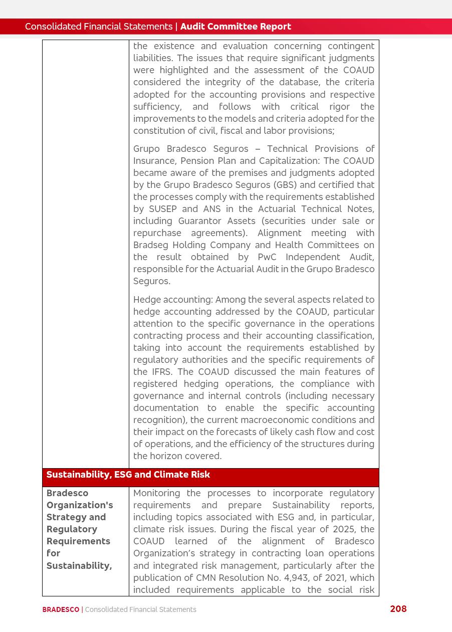 click on the items below to navigate through the document: 4Q 25 managerial analysis of results management report consolidated financial statements videoconference commenting on the results February 6th at 8:30 AM (US Eastern Time) economic and financial analysis reportBradesco | Economic and Financial Analysis Report 3 Table of Contents Managerial Analysis of Results 5 press release 6 highlights 4Q25 7 recurring net income statement 8 net interest income 9 funding sources 10 loan portfolio 11 expenses with expanded loan loss provisions 16 loan indicators 17 fee and commission income 19 operating expenses 21 Bradesco Seguros 22 basel 27 guidance, indicators & economic perspectives 28 Additional Information 29 corporate strategy | customer-centric 30 NPS 31 our people 32 sustainability 33 digital in figures | BIA 34 Bradesco Principal 35 Bradesco Expresso 36 international operations | My Account 37 Bradesco Bank 38 Ágora Investimentos 39 Digio 40 service points, clients and market share 41 return to shareholders 42 additional information 43 selected information 45 consolidated balance sheet – Bradesco 46 consolidated balance sheet – Insurance 47 statement of income – managerial vs. recurring | BRGAAP vs. IFRS comparative 48 Independent Auditor’s Report 49 Consolidated Financial Statements 53 Bradesco | Economic and Financial Analysis Report 4 Some numbers included in this Report have been subjected to rounding adjustments. As a result, some amounts indicated as total amounts in some charts may not be the arithmetic sum of the preceding numbers. Percentage variations not presented in the framework of this report, are related, in their majority, to the low value balances compared with the other periods presented. As of January 2025, we adopted in our Financial Statements the new accounting practices established by CMN Resolutions No. 4,966 and No. 4,975. For management purposes, we kept the information of the previous periods as already disclosed, which do not present relevant differences in the historical analysis of the results. For some credit indicators, when mentioned, we carry out historical data for comparability purposes on a pro-forma basis. In our financial statements the Organization opted for the exemption provided by the Standard not to resubmit comparative information from previous periods resulting from the changes. Managerial Analysis of Results Bradesco | Economic and Financial Analysis Report 6 press release Bradesco remains committed to expand profitability gradually and safely through the accelerated execution of the transformation plan. Our priority is to ensure the sustainability of the business by growing responsibly, keeping the cost of credit under control, investing in the transformation of the Organization, and reinforcing a customer centric approach in all decisions. In 2025, our commercial traction was reflected in impressive revenue growth across all of our core product lines. We maintained our risk appetite, new credit vintages with high quality and delinquency ratios under control. As a result, in 4Q25 we reported a Return on Equity (ROE) higher than our cost of capital, with eight straight quarters of profitability growth. Investments in our transformation have placed temporary pressure on expenses, but they are intended to boost our competitiveness in the short, medium and long term. The integration between "change the bank" and "run the bank" is intensifying, as the benefits of transformation continue to enhance operational performance and make it more sustainable. Net income was R$6.5 billion in 4Q25, resulting in ROAE of 15.2%, generating a profit of R$24.7 billion in 2025 and growth of 26.1% in 2025 vs. 2024. Total revenues topped R$36.1 billion for the quarter, growing 2.9% q/q and 9.8% y/y, driven by the performance of the net interest income and fee and commission income. Net interest income came to R$19.2 billion for the quarter, expanding 2.9% q/q and 13.2% y/y. Client NII reached R$19.1 billion, rising 2.7% q/q and 18.4% y/y, mainly due to the effect of the increase in the loan portfolio and efficiency on the funding margin. Market NII totaled R$126 million in 4Q25, in line with expectations, bringing the full-year figure to R$975 million. The expanded loan portfolio came to R$1.089 trillion, growing 11.0% y/y and 5.3% q/q in December 2025, reflecting our traction in the MSME and Individuals segments, and operations with Large Companies carried out at the end of the year. In December 2025, the delinquency ratio (over 90 days NPL) remained stable. Problem assets in the restructured portfolio fell by R$2.4 billion versus the prior quarter and R$10.5 billion in the annual comparison, while cured assets rose 10.7% q/q and 58.2% y/y. Consequently, stage 3 operations declined throughout 2025, with a 40 bps reduction in the last quarter. The cost of credit retreated slightly from 3.3% in 3Q25 to 3.2% in 4Q25, reflecting the quality of the concession and growth of the loan portfolio over the period. Fee and commission income performed strongly, growing 4.6% q/q and 8.0% y/y. The positive standouts over the quarter included capital market, card income and loan operations. The operational performance from insurance operations generated an income of R$5.6 billion (-1.0% q/q and +2.1% y/y) and net income of R$2.8 billion (10.7% q/q and 10.6% y/y). The ROAE of the insurance company was 24.3% in 4Q25. In 2025, the insurance earnings came to R$10.1 billion. Our efficiency ratio (expenses/revenues) improved by 2.2 p.p. over the year, attributed to a 13.2% increase in revenues and sound management of expenses. In 2025, operating expenses rose by 8.5% while administrative and personnel expenses saw a 5.0% bump, which includes the impact of the collective bargaining agreement of 5.68% and increase in profit-sharing expenditures. Temporary pressures seen throughout the year came mainly from our transformation initiatives and a strategic strengthening of the 