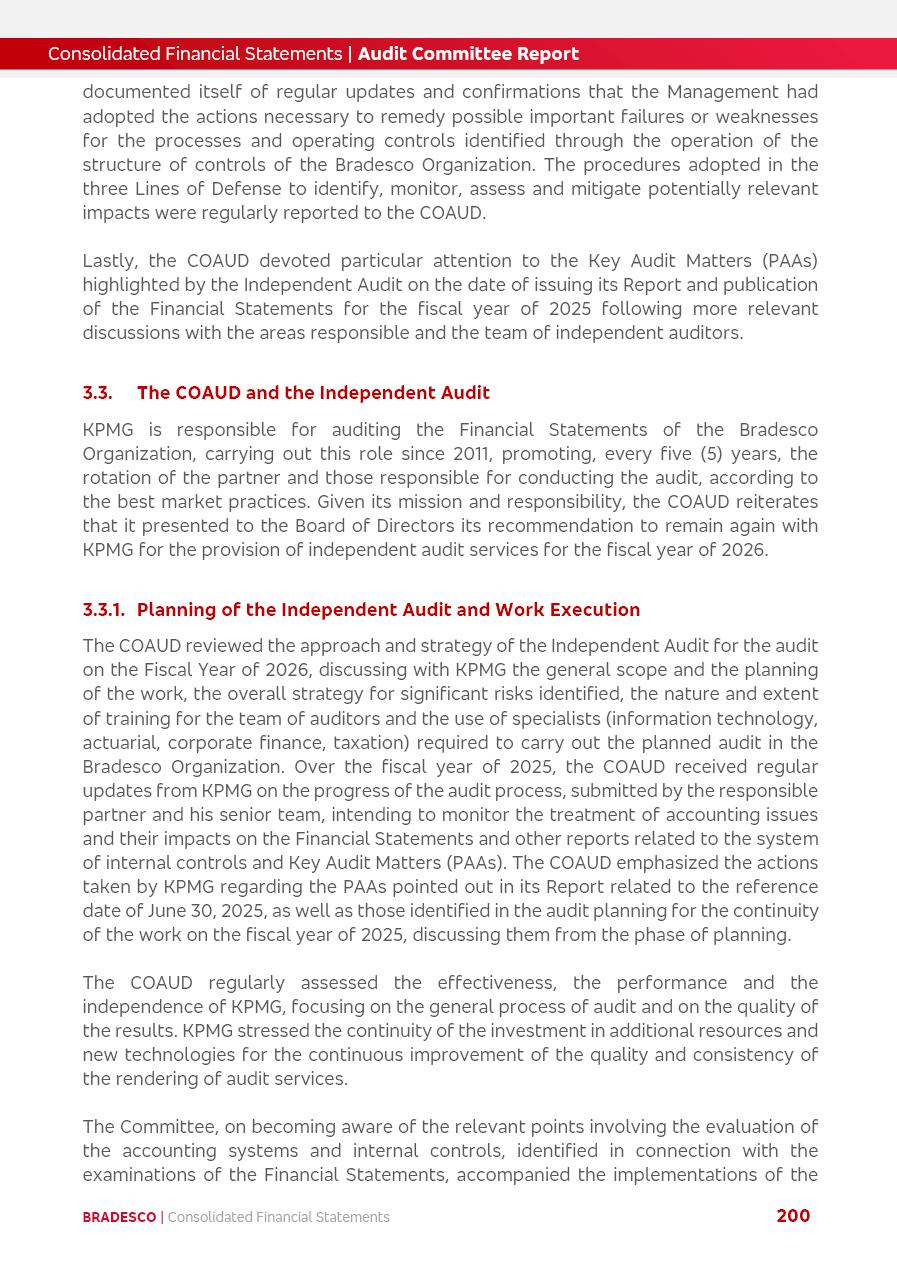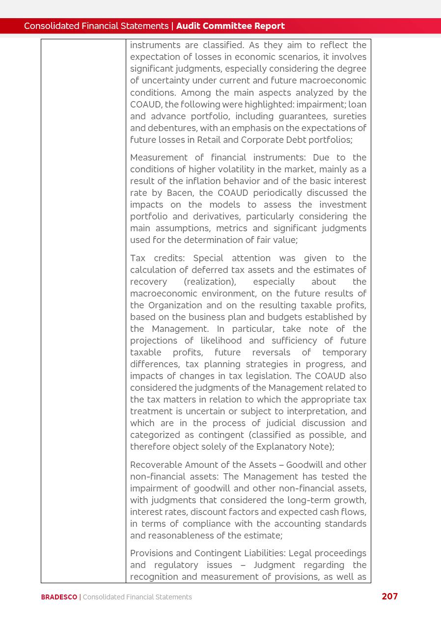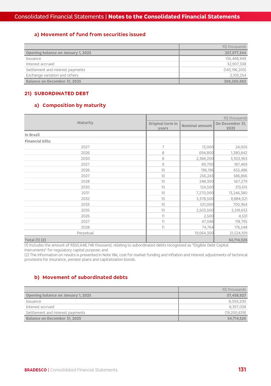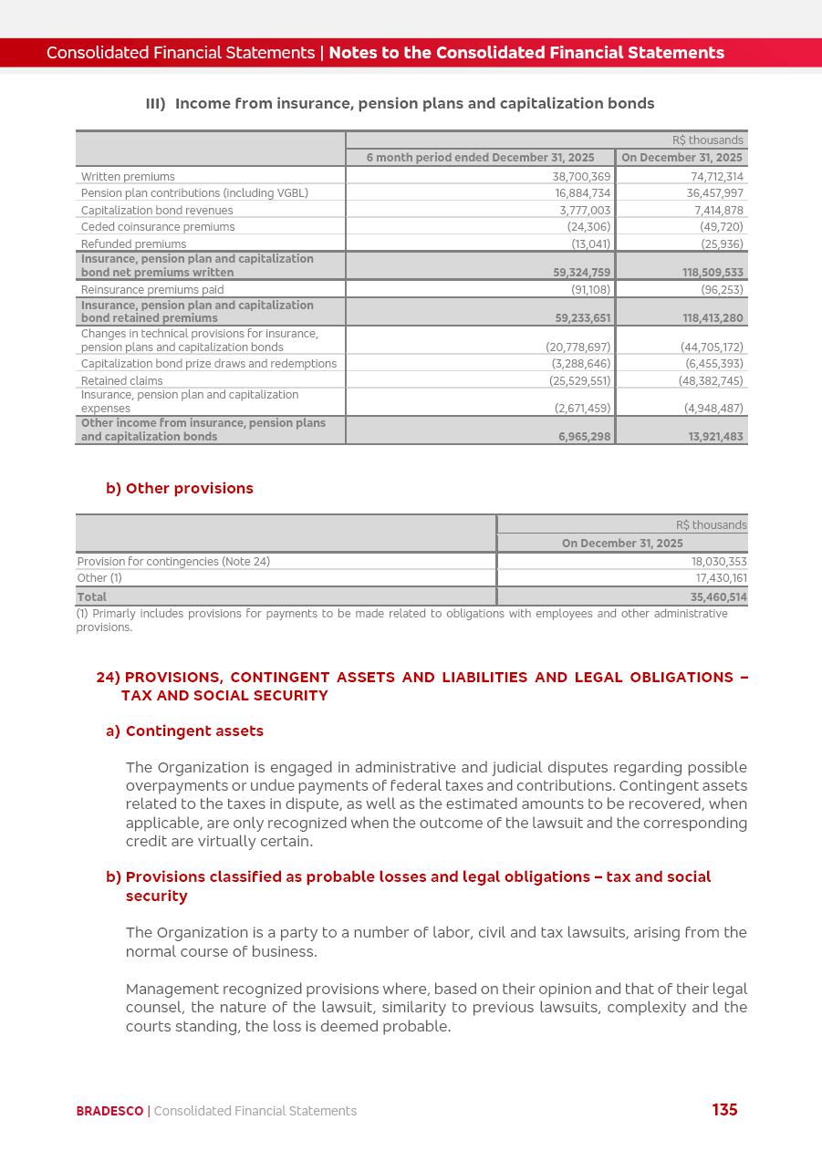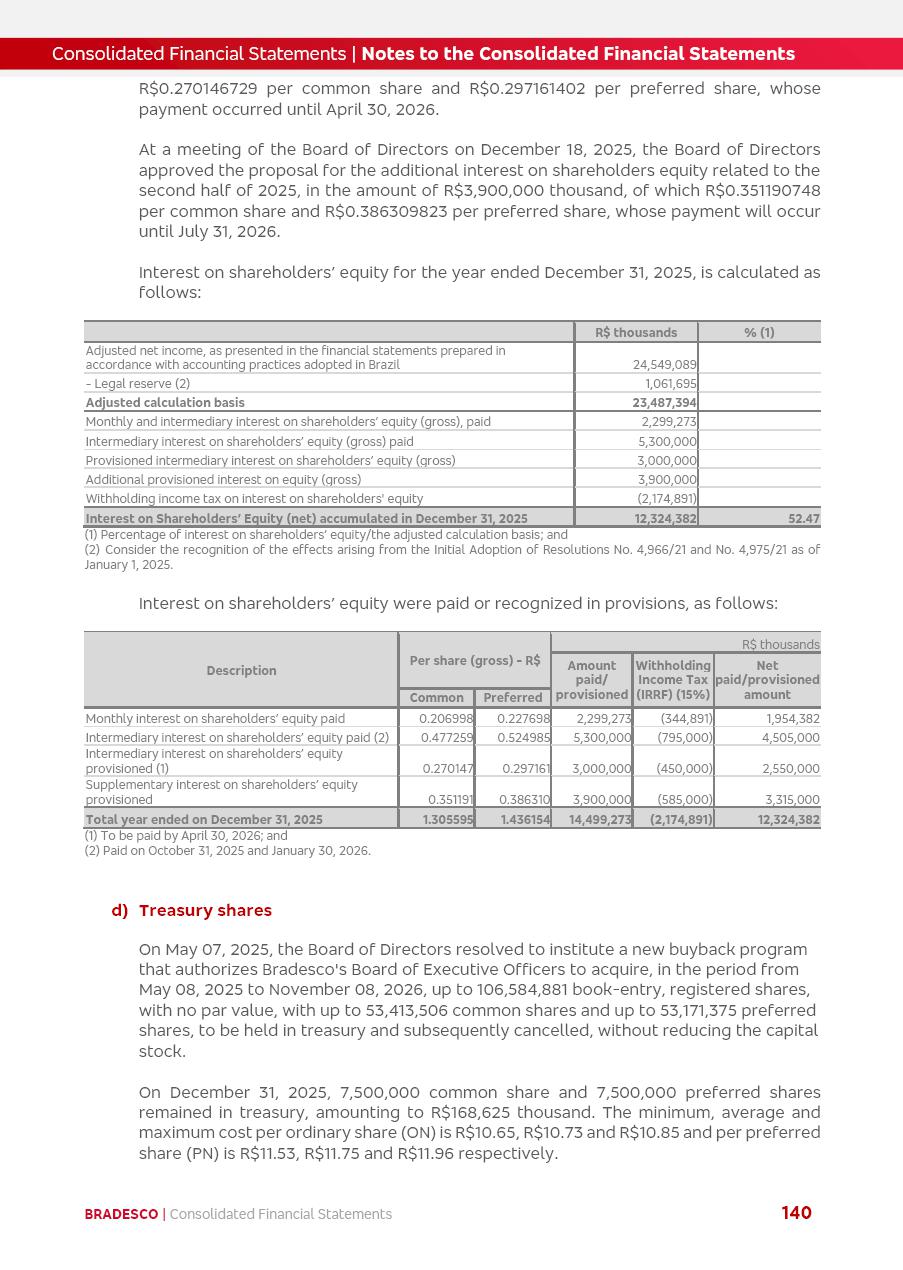 click on the items below to navigate through the document: 4Q 25 managerial analysis of results management report consolidated financial statements videoconference commenting on the results February 6th at 8:30 AM (US Eastern Time) economic and financial analysis reportBradesco | Economic and Financial Analysis Report 3 Table of Contents Managerial Analysis of Results 5 press release 6 highlights 4Q25 7 recurring net income statement 8 net interest income 9 funding sources 10 loan portfolio 11 expenses with expanded loan loss provisions 16 loan indicators 17 fee and commission income 19 operating expenses 21 Bradesco Seguros 22 basel 27 guidance, indicators & economic perspectives 28 Additional Information 29 corporate strategy | customer-centric 30 NPS 31 our people 32 sustainability 33 digital in figures | BIA 34 Bradesco Principal 35 Bradesco Expresso 36 international operations | My Account 37 Bradesco Bank 38 Ágora Investimentos 39 Digio 40 service points, clients and market share 41 return to shareholders 42 additional information 43 selected information 45 consolidated balance sheet – Bradesco 46 consolidated balance sheet – Insurance 47 statement of income – managerial vs. recurring | BRGAAP vs. IFRS comparative 48 Independent Auditor’s Report 49 Consolidated Financial Statements 53 Bradesco | Economic and Financial Analysis Report 4 Some numbers included in this Report have been subjected to rounding adjustments. As a result, some amounts indicated as total amounts in some charts may not be the arithmetic sum of the preceding numbers. Percentage variations not presented in the framework of this report, are related, in their majority, to the low value balances compared with the other periods presented. As of January 2025, we adopted in our Financial Statements the new accounting practices established by CMN Resolutions No. 4,966 and No. 4,975. For management purposes, we kept the information of the previous periods as already disclosed, which do not present relevant differences in the historical analysis of the results. For some credit indicators, when mentioned, we carry out historical data for comparability purposes on a pro-forma basis. In our financial statements the Organization opted for the exemption provided by the Standard not to resubmit comparative information from previous periods resulting from the changes. Managerial Analysis of Results Bradesco | Economic and Financial Analysis Report 6 press release Bradesco remains committed to expand profitability gradually and safely through the accelerated execution of the transformation plan. Our priority is to ensure the sustainability of the business by growing responsibly, keeping the cost of credit under control, investing in the transformation of the Organization, and reinforcing a customer centric approach in all decisions. In 2025, our commercial traction was reflected in impressive revenue growth across all of our core product lines. We maintained our risk appetite, new credit vintages with high quality and delinquency ratios under control. As a result, in 4Q25 we reported a Return on Equity (ROE) higher than our cost of capital, with eight straight quarters of profitability growth. Investments in our transformation have placed temporary pressure on expenses, but they are intended to boost our competitiveness in the short, medium and long term. The integration between "change the bank" and "run the bank" is intensifying, as the benefits of transformation continue to enhance operational performance and make it more sustainable. Net income was R$6.5 billion in 4Q25, resulting in ROAE of 15.2%, generating a profit of R$24.7 billion in 2025 and growth of 26.1% in 2025 vs. 2024. Total revenues topped R$36.1 billion for the quarter, growing 2.9% q/q and 9.8% y/y, driven by the performance of the net interest income and fee and commission income. Net interest income came to R$19.2 billion for the quarter, expanding 2.9% q/q and 13.2% y/y. Client NII reached R$19.1 billion, rising 2.7% q/q and 18.4% y/y, mainly due to the effect of the increase in the loan portfolio and efficiency on the funding margin. Market NII totaled R$126 million in 4Q25, in line with expectations, bringing the full-year figure to R$975 million. The expanded loan portfolio came to R$1.089 trillion, growing 11.0% y/y and 5.3% q/q in December 2025, reflecting our traction in the MSME and Individuals segments, and operations with Large Companies carried out at the end of the year. In December 2025, the delinquency ratio (over 90 days NPL) remained stable. Problem assets in the restructured portfolio fell by R$2.4 billion versus the prior quarter and R$10.5 billion in the annual comparison, while cured assets rose 10.7% q/q and 58.2% y/y. Consequently, stage 3 operations declined throughout 2025, with a 40 bps reduction in the last quarter. The cost of credit retreated slightly from 3.3% in 3Q25 to 3.2% in 4Q25, reflecting the quality of the concession and growth of the loan portfolio over the period. Fee and commission income performed strongly, growing 4.6% q/q and 8.0% y/y. The positive standouts over the quarter included capital market, card income and loan operations. The operational performance from insurance operations generated an income of R$5.6 billion (-1.0% q/q and +2.1% y/y) and net income of R$2.8 billion (10.7% q/q and 10.6% y/y). The ROAE of the insurance company was 24.3% in 4Q25. In 2025, the insurance earnings came to R$10.1 billion. Our efficiency ratio (expenses/revenues) improved by 2.2 p.p. over the year, attributed to a 13.2% increase in revenues and sound management of expenses. In 2025, operating expenses rose by 8.5% while administrative and personnel expenses saw a 5.0% bump, which includes the impact of the collective bargaining agreement of 5.68% and increase in profit-sharing expenditures. Temporary pressures seen throughout the year came mainly from our transformation initiatives and a strategic strengthening of the 