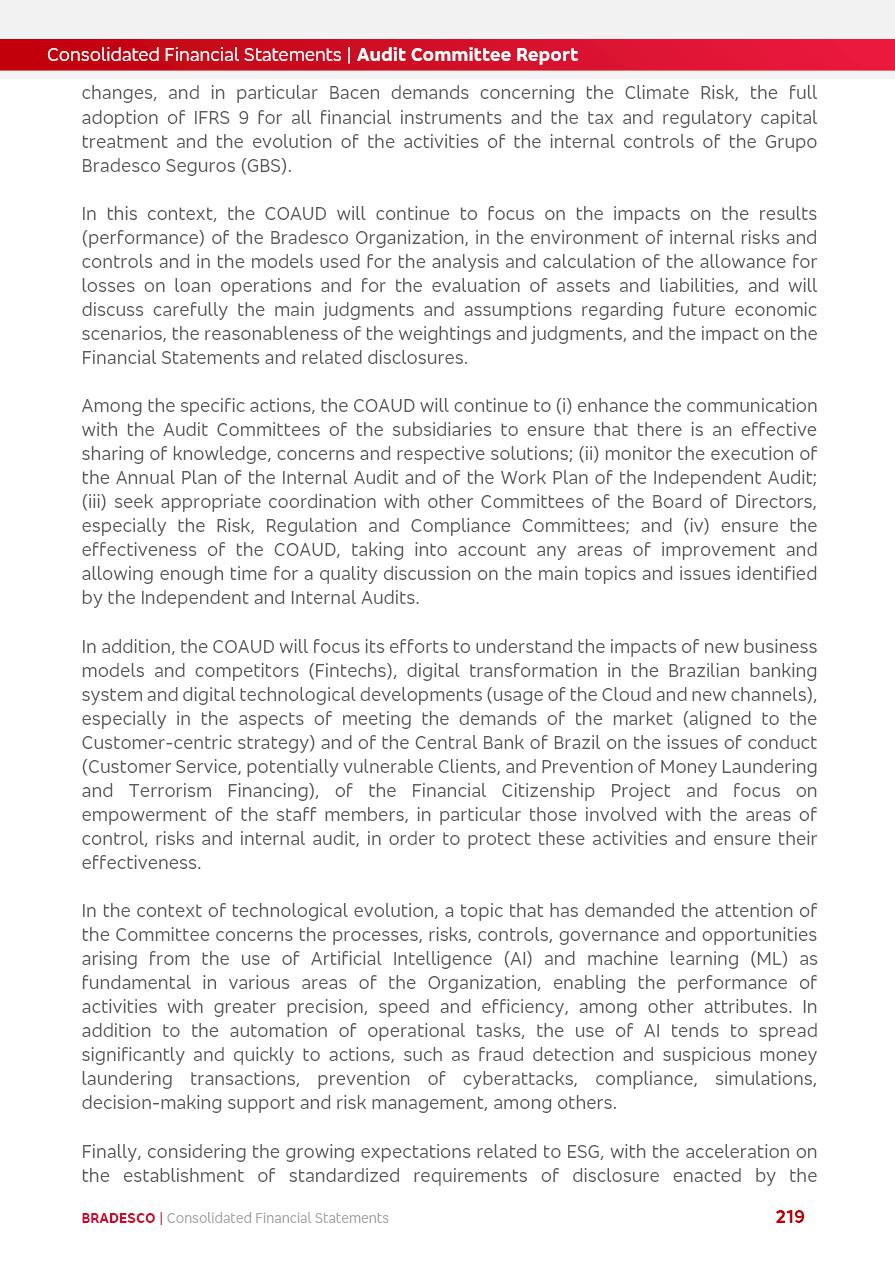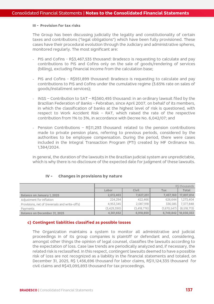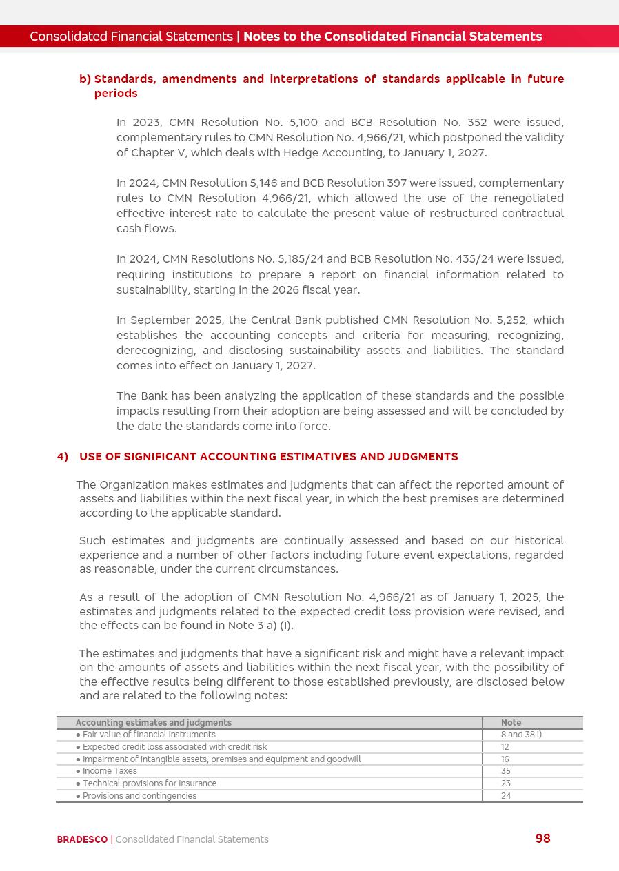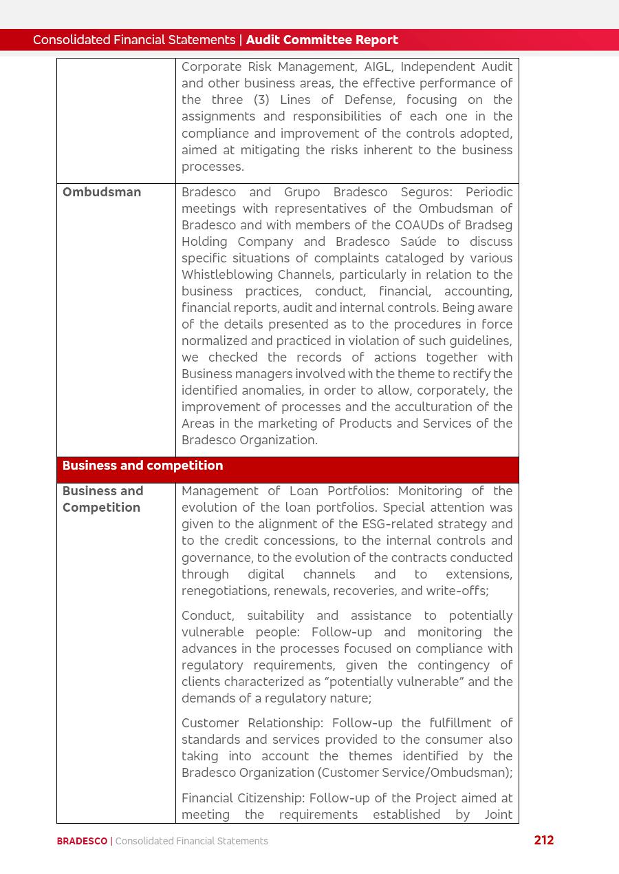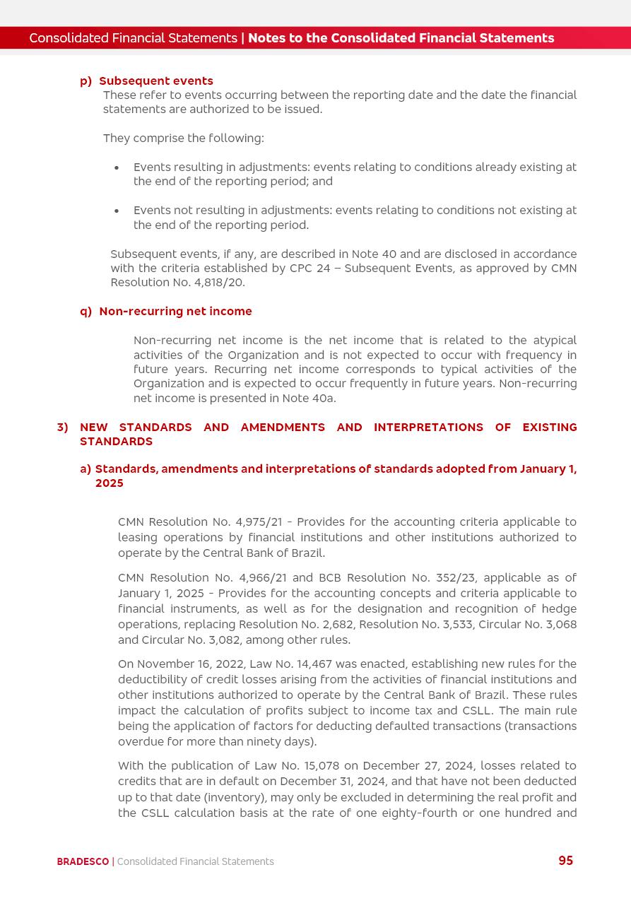 click on the items below to navigate through the document: 4Q 25 managerial analysis of results management report consolidated financial statements videoconference commenting on the results February 6th at 8:30 AM (US Eastern Time) economic and financial analysis reportBradesco | Economic and Financial Analysis Report 3 Table of Contents Managerial Analysis of Results 5 press release 6 highlights 4Q25 7 recurring net income statement 8 net interest income 9 funding sources 10 loan portfolio 11 expenses with expanded loan loss provisions 16 loan indicators 17 fee and commission income 19 operating expenses 21 Bradesco Seguros 22 basel 27 guidance, indicators & economic perspectives 28 Additional Information 29 corporate strategy | customer-centric 30 NPS 31 our people 32 sustainability 33 digital in figures | BIA 34 Bradesco Principal 35 Bradesco Expresso 36 international operations | My Account 37 Bradesco Bank 38 Ágora Investimentos 39 Digio 40 service points, clients and market share 41 return to shareholders 42 additional information 43 selected information 45 consolidated balance sheet – Bradesco 46 consolidated balance sheet – Insurance 47 statement of income – managerial vs. recurring | BRGAAP vs. IFRS comparative 48 Independent Auditor’s Report 49 Consolidated Financial Statements 53 Bradesco | Economic and Financial Analysis Report 4 Some numbers included in this Report have been subjected to rounding adjustments. As a result, some amounts indicated as total amounts in some charts may not be the arithmetic sum of the preceding numbers. Percentage variations not presented in the framework of this report, are related, in their majority, to the low value balances compared with the other periods presented. As of January 2025, we adopted in our Financial Statements the new accounting practices established by CMN Resolutions No. 4,966 and No. 4,975. For management purposes, we kept the information of the previous periods as already disclosed, which do not present relevant differences in the historical analysis of the results. For some credit indicators, when mentioned, we carry out historical data for comparability purposes on a pro-forma basis. In our financial statements the Organization opted for the exemption provided by the Standard not to resubmit comparative information from previous periods resulting from the changes. Managerial Analysis of Results Bradesco | Economic and Financial Analysis Report 6 press release Bradesco remains committed to expand profitability gradually and safely through the accelerated execution of the transformation plan. Our priority is to ensure the sustainability of the business by growing responsibly, keeping the cost of credit under control, investing in the transformation of the Organization, and reinforcing a customer centric approach in all decisions. In 2025, our commercial traction was reflected in impressive revenue growth across all of our core product lines. We maintained our risk appetite, new credit vintages with high quality and delinquency ratios under control. As a result, in 4Q25 we reported a Return on Equity (ROE) higher than our cost of capital, with eight straight quarters of profitability growth. Investments in our transformation have placed temporary pressure on expenses, but they are intended to boost our competitiveness in the short, medium and long term. The integration between "change the bank" and "run the bank" is intensifying, as the benefits of transformation continue to enhance operational performance and make it more sustainable. Net income was R$6.5 billion in 4Q25, resulting in ROAE of 15.2%, generating a profit of R$24.7 billion in 2025 and growth of 26.1% in 2025 vs. 2024. Total revenues topped R$36.1 billion for the quarter, growing 2.9% q/q and 9.8% y/y, driven by the performance of the net interest income and fee and commission income. Net interest income came to R$19.2 billion for the quarter, expanding 2.9% q/q and 13.2% y/y. Client NII reached R$19.1 billion, rising 2.7% q/q and 18.4% y/y, mainly due to the effect of the increase in the loan portfolio and efficiency on the funding margin. Market NII totaled R$126 million in 4Q25, in line with expectations, bringing the full-year figure to R$975 million. The expanded loan portfolio came to R$1.089 trillion, growing 11.0% y/y and 5.3% q/q in December 2025, reflecting our traction in the MSME and Individuals segments, and operations with Large Companies carried out at the end of the year. In December 2025, the delinquency ratio (over 90 days NPL) remained stable. Problem assets in the restructured portfolio fell by R$2.4 billion versus the prior quarter and R$10.5 billion in the annual comparison, while cured assets rose 10.7% q/q and 58.2% y/y. Consequently, stage 3 operations declined throughout 2025, with a 40 bps reduction in the last quarter. The cost of credit retreated slightly from 3.3% in 3Q25 to 3.2% in 4Q25, reflecting the quality of the concession and growth of the loan portfolio over the period. Fee and commission income performed strongly, growing 4.6% q/q and 8.0% y/y. The positive standouts over the quarter included capital market, card income and loan operations. The operational performance from insurance operations generated an income of R$5.6 billion (-1.0% q/q and +2.1% y/y) and net income of R$2.8 billion (10.7% q/q and 10.6% y/y). The ROAE of the insurance company was 24.3% in 4Q25. In 2025, the insurance earnings came to R$10.1 billion. Our efficiency ratio (expenses/revenues) improved by 2.2 p.p. over the year, attributed to a 13.2% increase in revenues and sound management of expenses. In 2025, operating expenses rose by 8.5% while administrative and personnel expenses saw a 5.0% bump, which includes the impact of the collective bargaining agreement of 5.68% and increase in profit-sharing expenditures. Temporary pressures seen throughout the year came mainly from our transformation initiatives and a strategic strengthening of the 