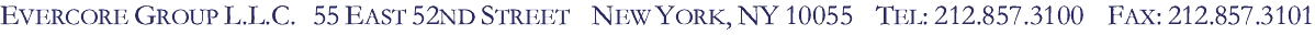 On the same day, Mr. Wright received an unsolicited inbound request from another private equity firm (“PE Firm I”) to discuss its potential interest in exploring a strategic transaction involving the Company. Mr. Wright did not respond to PE Firm I’s inbound request and forwarded the request to representatives of Evercore and of J.P. Morgan.