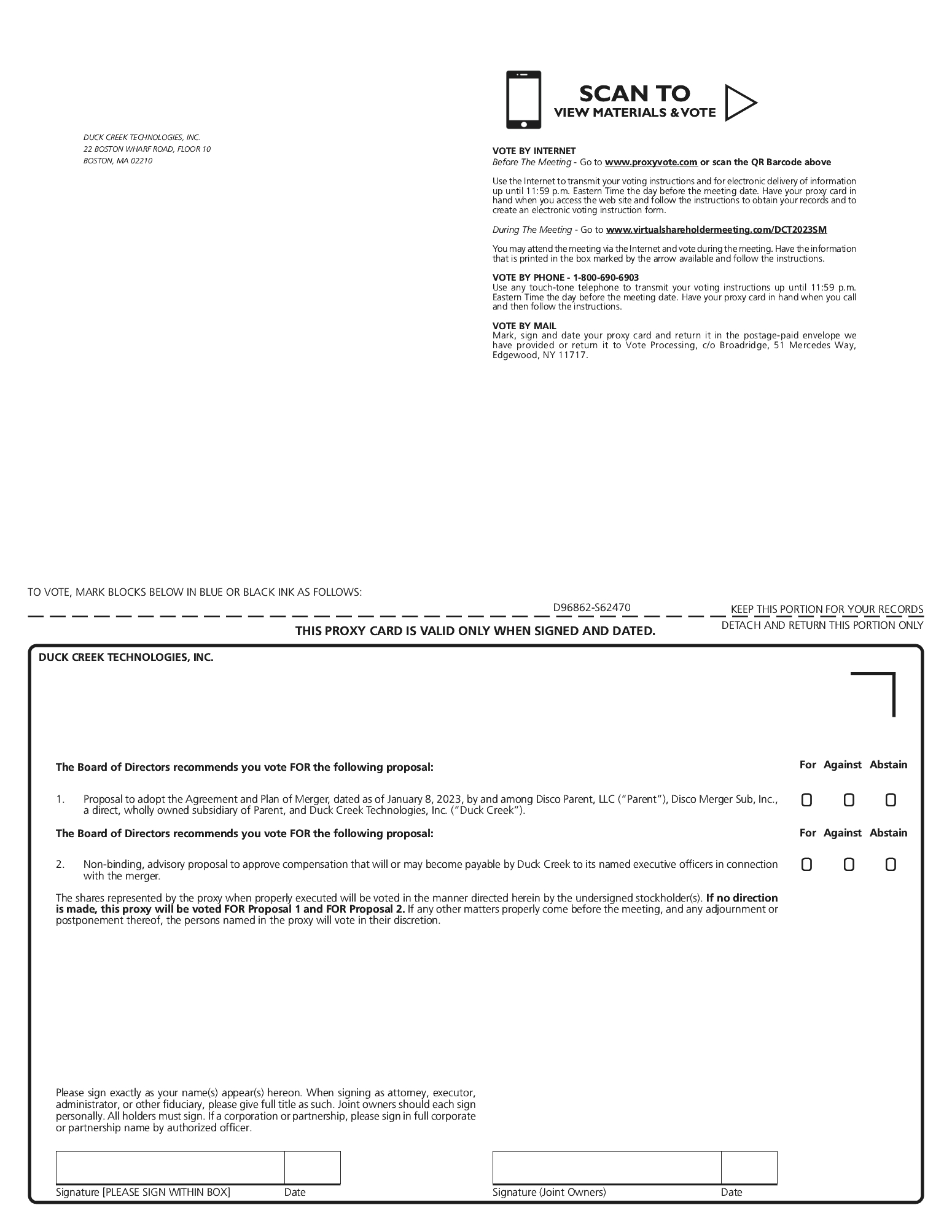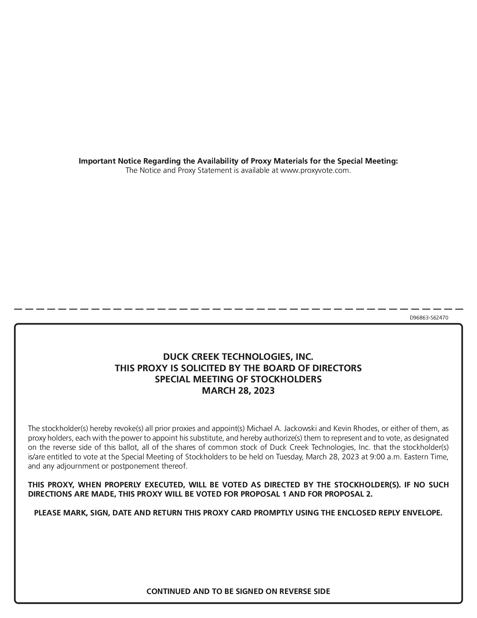 On December 15, 2022, Vista submitted a written, non-binding, preliminary indication of interest for a strategic transaction involving the Company, including a preliminary offer price range of $16.00-$18.00 per share of Duck Creek Common Stock, in cash.