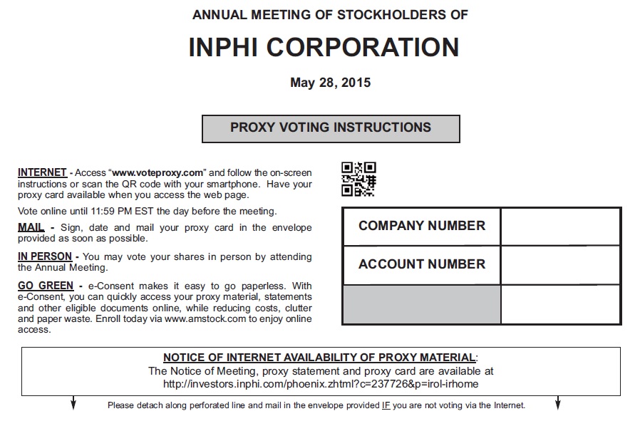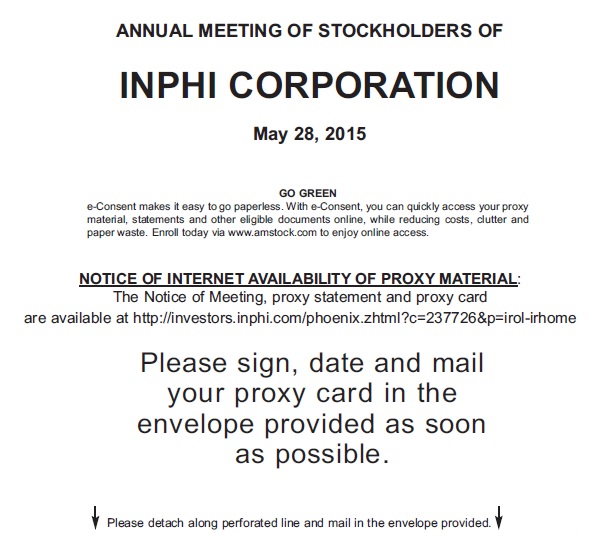 Our Proxy Statement for our 2015 Annual Meeting of Stockholders, along with the proxy card, our Annual Report to Stockholders for the year ended December 31, 2014, and our Annual Report on Form 10-K are available on our website at www.inphi.com.