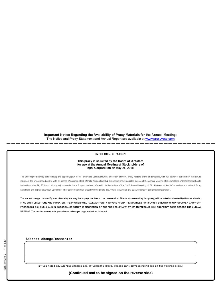 Our Proxy Statement for our 2018 Annual Meeting of Stockholders, along with the proxy card, our Annual Report to Stockholders for the year ended December 31, 2017, and our Annual Report on Form 10-K are available on our website at www.inphi.com.