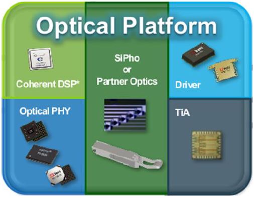 Silicon Photonics Design Expertise. We have developed deep expertise in Silicon photonics (Sipho) and successfully commercialized the world first 100G dense wavelength division multiplexing (DWDM) Sipho-based solutions that consumes as little as 4.5W of power versus alternate solutions at 25W. This Sipho-based solution has been deployed in high volume at a Tier-1 cloud vendor and continues to gain market acceptance at Tier-1 OEMs for the enterprise and internet exchange customers. |