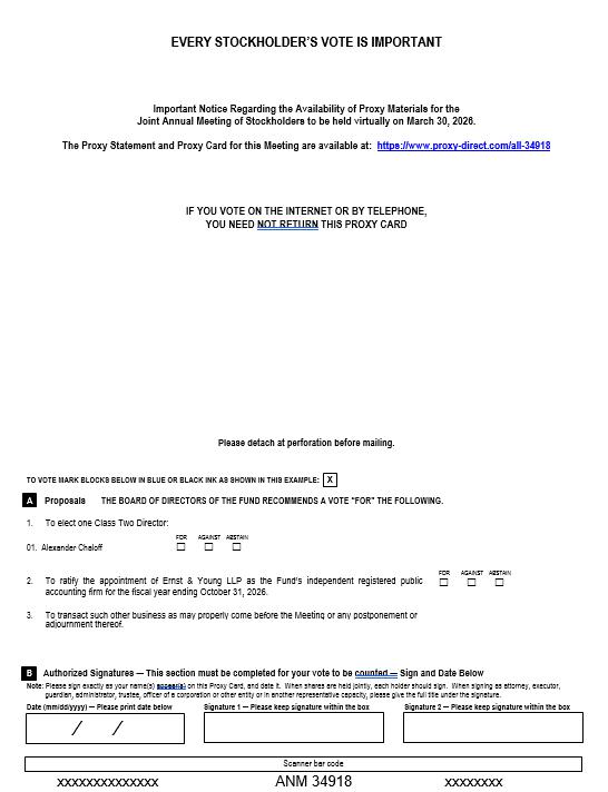 Any stockholder of record of AGHIF or ANMIF at the close of business on February 17, 2026 is entitled to notice of, and to vote at, the Meeting or any postponement or adjournment thereof. The enclosed proxy is being solicited on behalf of the Board of Directors of each Fund.