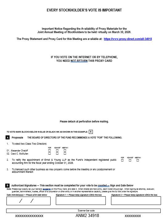 | 2. | To consider and vote upon the ratification of the appointment of Ernst & Young LLP as each Fund’s independent registered public accounting firm for the fiscal year ending, as applicable, March 31, 2027 (AGHIF) and October 31, 2026 (ANMIF); and |