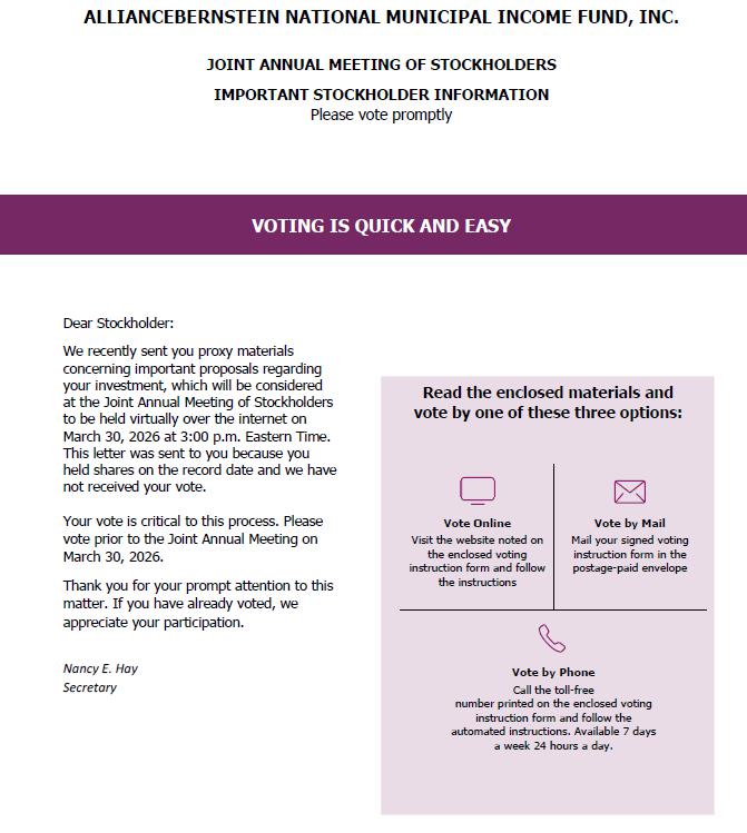 | AllianceBernstein National Municipal Income Fund, Inc. | |