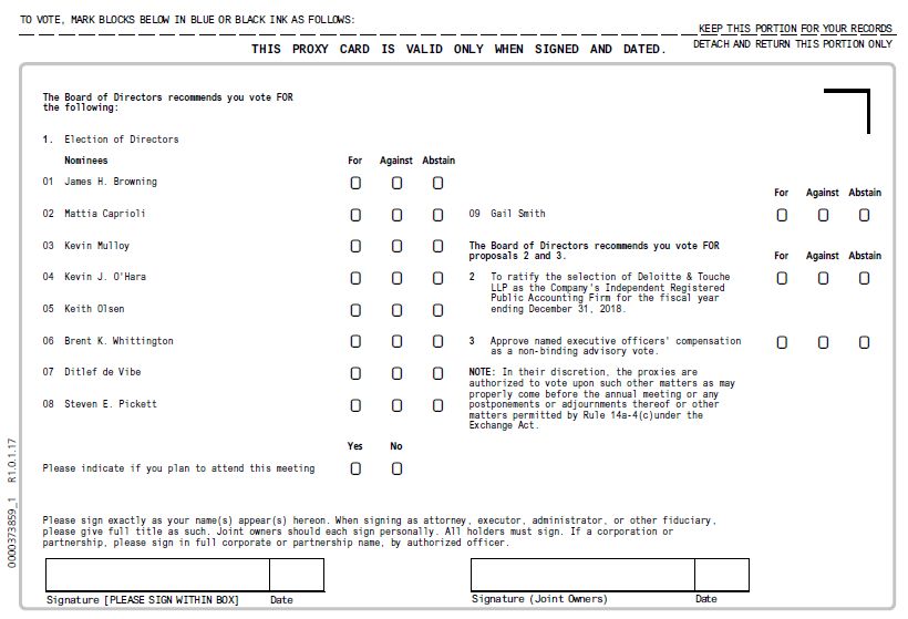 Please note that no changes have been made to the body of the Proxy Statement and that the correct version of the proxy card has been included in the Proxy Statement being mailed to the Company’s stockholders.