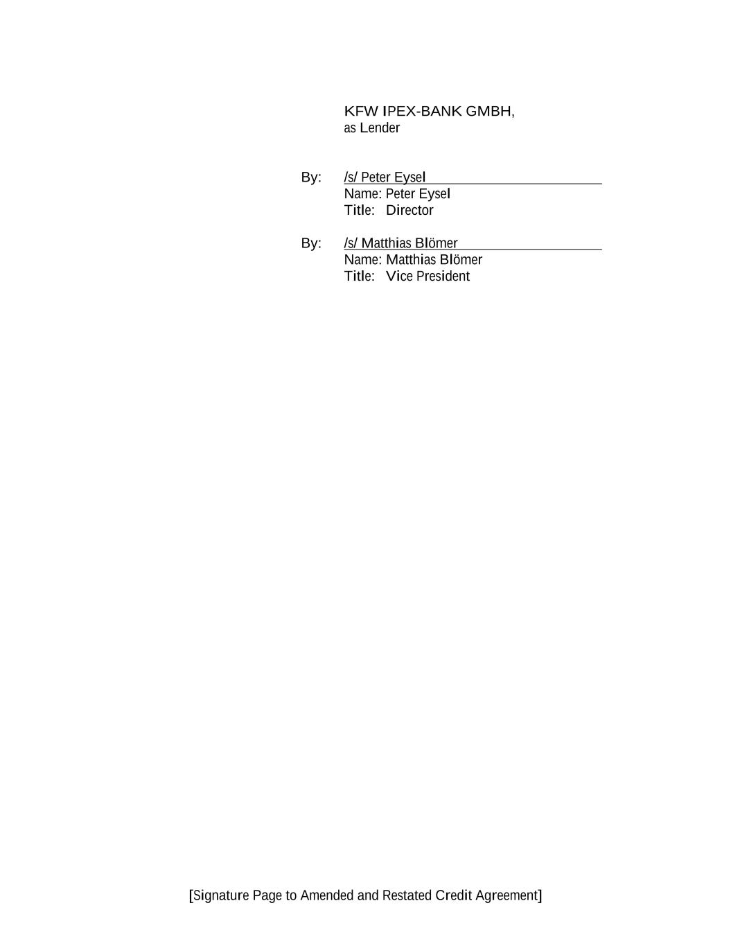 [Signature Page to Amended and Restated Credit Agreement] KFW IPEX-BANK GMBH, as Lender By: /s/ Peter Eysel Name: Peter Eysel Title: Director By: /s/ Matthias Blömer Name: Matthias Blömer Title: Vice President