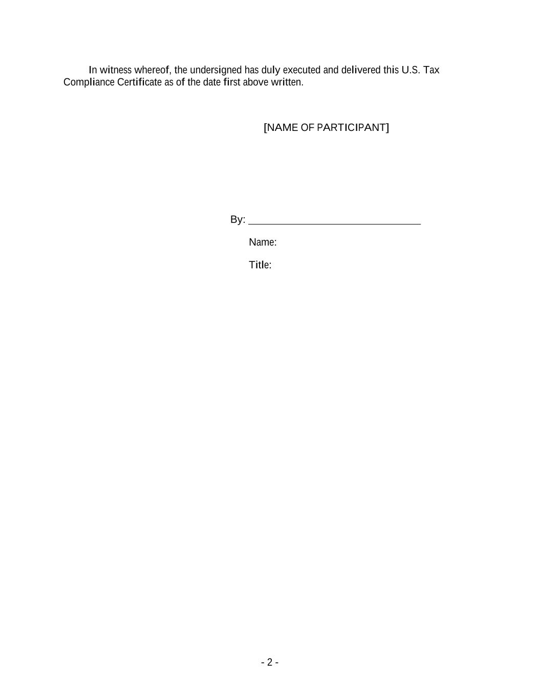 - 2 - In witness whereof, the undersigned has duly executed and delivered this U.S. Tax Compliance Certificate as of the date first above written. [NAME OF PARTICIPANT] By: Name: Title: