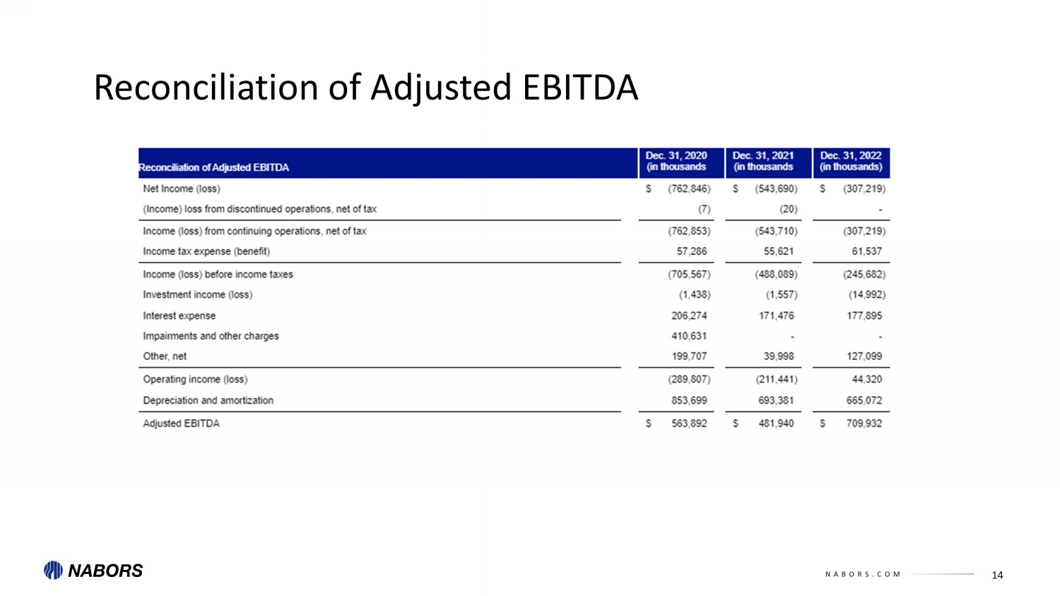 NABORS.COM 14 Reconciliation of Adjusted EBITDA