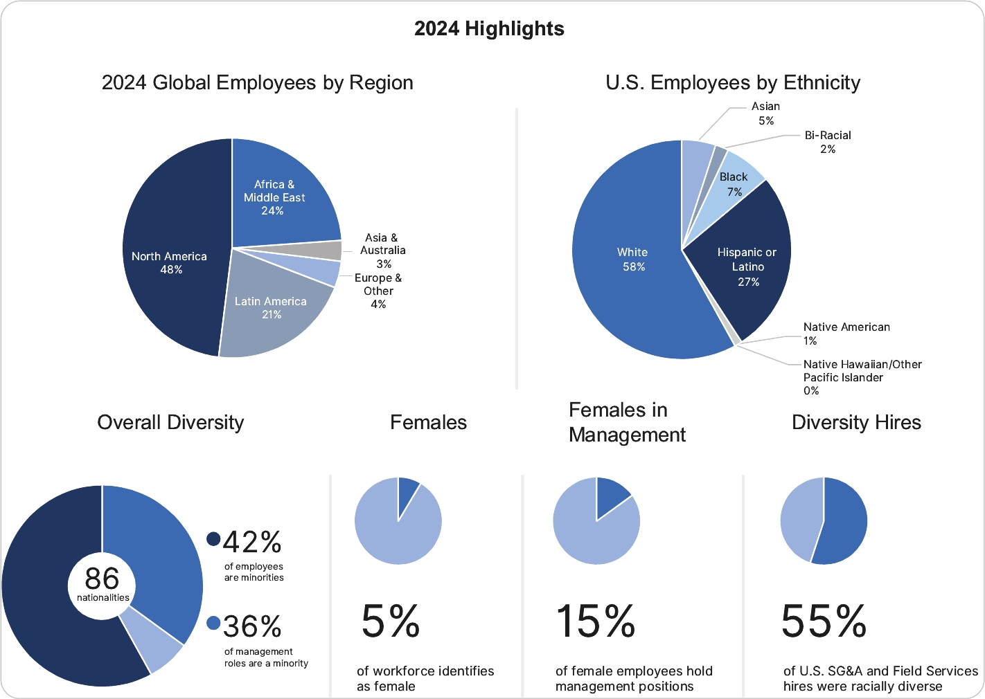 “Field” employees are assigned to a specific rig, whereas FS employees are assigned to a yard/warehouse. SGA employees are not assigned to any rig.