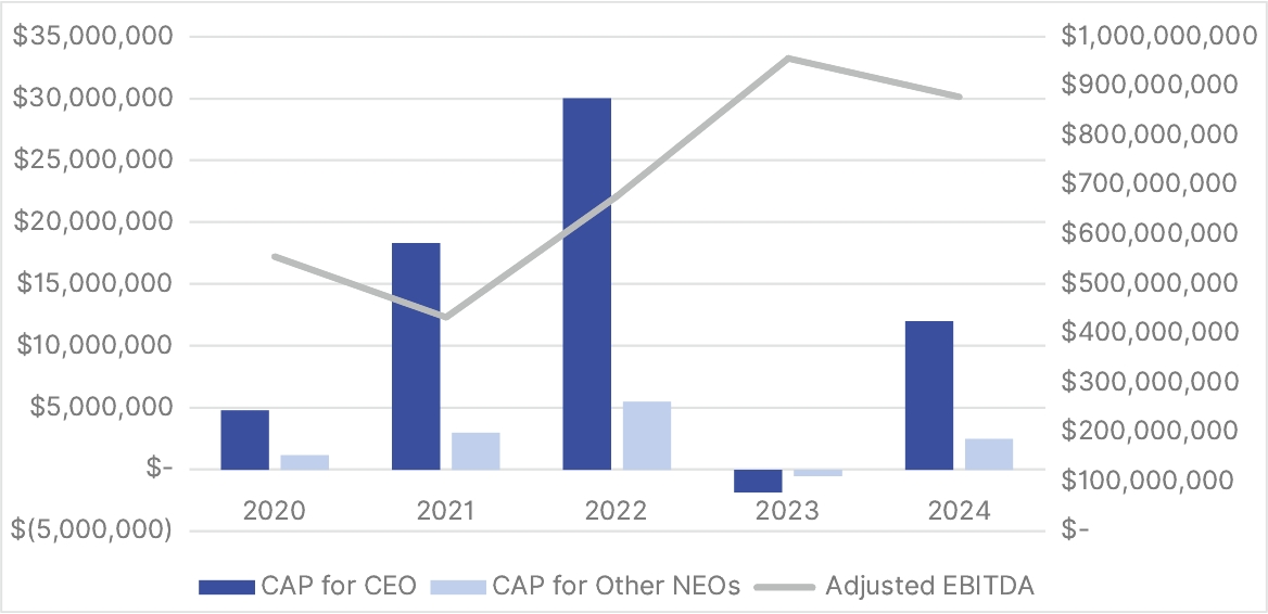 “Adjusted EBITDA” is defined as net income (loss) adjusted for (1) (Income) loss from discontinued operations, net of tax (2) Income tax expense (benefit), (3) Investment income (loss), Interest expense, Other, net and (4) Depreciation and amortization. Adjusted EBITDA is used in the calculation of CEO and CFO compensation.