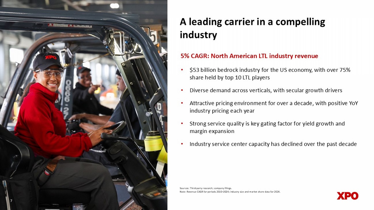 2 Forward - looking statements This document includes forward - looking statements within the meaning of Section 27 A of the Securities Act of 1933 , as amended, and Section 21 E of the Securities Exchange Act of 1934 , as amended, including statements relating to our full year 2026 expectations of gross capex, interest expense, pension income, adjusted effective tax rate, and diluted share count, and future financial targets of North American LTL revenue CAGR, adjusted EBITDA CAGR, adjusted operating ratio improvement, and capex as a percentage of revenue . All statements other than statements of historical fact are, or may be deemed to be, forward - looking statements . In some cases, forward - looking statements can be identified by the use of forward - looking terms such as “anticipate,” “estimate,” “believe,” “continue,” “could,” “intend,” “may,” “plan,” “potential,” “predict,” “should,” “will,” “expect,” “objective,” “projection,” “forecast,” “goal,” “guidance,” “outlook,” “effort,” “target,” “trajectory” or the negative of these terms or other comparable terms . These forward - looking statements are based on certain assumptions and analyses made by us in light of our experience and our perception of historical trends, current conditions and expected future developments, as well as other factors we believe are appropriate in the circumstances . These forward - looking statements are subject to known and unknown risks, uncertainties and assumptions that may cause actual results, levels of activity, performance or achievements to be materially different from any future results, levels of activity, performance or achievements expressed or implied by such forward - looking statements . Factors that might cause or contribute to a material difference include the risks discussed in our filings with the SEC, and the following : the effects of business, economic, political, legal, and regulatory impacts or conflicts upon our operations ; supply chain disruptions and shortages, strains on production or extraction of raw materials, cost inflation and labor and equipment shortages ; our ability to align our investments in capital assets, including equipment, service centers, and warehouses to our customers’ demands ; our ability to implement our cost and revenue initiatives and realize growth and expansion as a result of those initiatives ; the effectiveness of our action plan, and other management actions, to improve our North American LTL business ; our ability to continue insourcing linehaul in ways that enhance our network efficiency and productivity ; the anticipated impact of a freight market recovery on our business ; our ability to capture profitable share gains, facilitate yield growth, and improve margins during an upcycle ; our ability to benefit from a sale, spin - off or other divestiture of one or more business units or to successfully integrate and realize anticipated synergies, cost savings and profit opportunities from acquired companies ; goodwill impairment ; issues related to compliance with data protection laws, competition laws, and intellectual property laws ; fluctuations in currency exchange rates, fuel prices and fuel surcharges ; our ability to develop and implement proprietary technology and suitable information technology systems that contribute to cost and productivity improvements ; the impact of potential cyber - attacks and information technology or data security breaches or failures ; our ability to repurchase shares on favorable terms ; our indebtedness ; our ability to raise debt and equity capital ; fluctuations in interest rates ; seasonal fluctuations ; our ability to maintain positive relationships with our network of third - party transportation providers ; our ability to attract and retain management talent and key employees including qualified drivers ; labor matters ; litigation ; competition ; and our ability to improve pricing growth . All forward - looking statements set forth in this document are qualified by these cautionary statements and there can be no assurance that the actual results or developments anticipated by us will be realized or, even if substantially realized, that they will have the expected consequences to or effects on us or our business or operations . Forward - looking statements set forth in this document speak only as of the date hereof, and we do not undertake any obligation to update forward - looking statements except to the extent required by law . Non - GAAP financial measures This presentation contains non - GAAP financial measures . For a description of these non - GAAP financial measures, including reconciliations to the most comparable measure under GAAP, see the Appendix to this presentation .