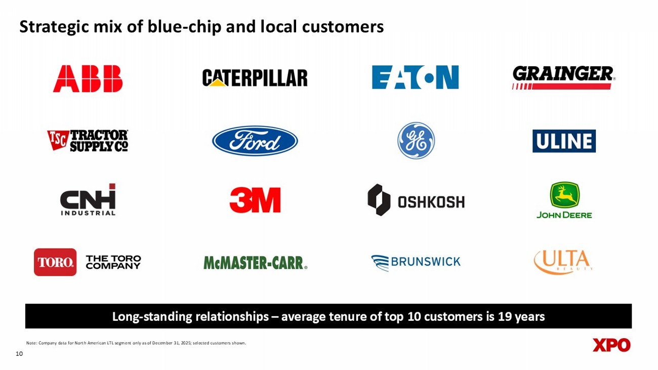 Strategic mix of blue - chip and local customers 10 Note: Company data for North American LTL segment only as of December 31, 2025; selected customers shown. Long - standing relationships – average tenure of top 10 customers is 19 years