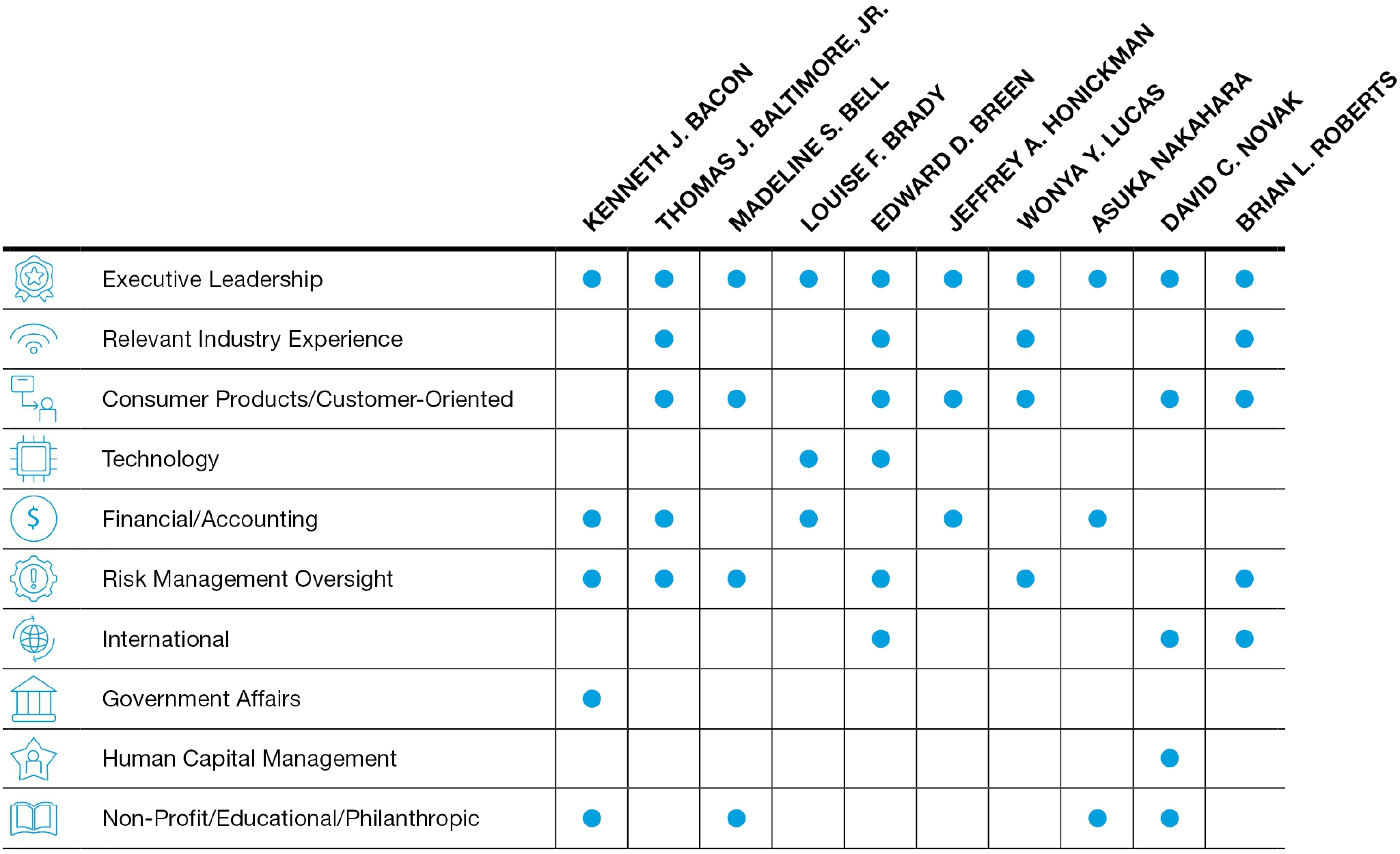 06 - Jeffrey A. Honickman 07 - Wonya Y. Lucas 08 - Asuka Nakahara 09 - David C. Novak 10 - Brian L. Roberts |