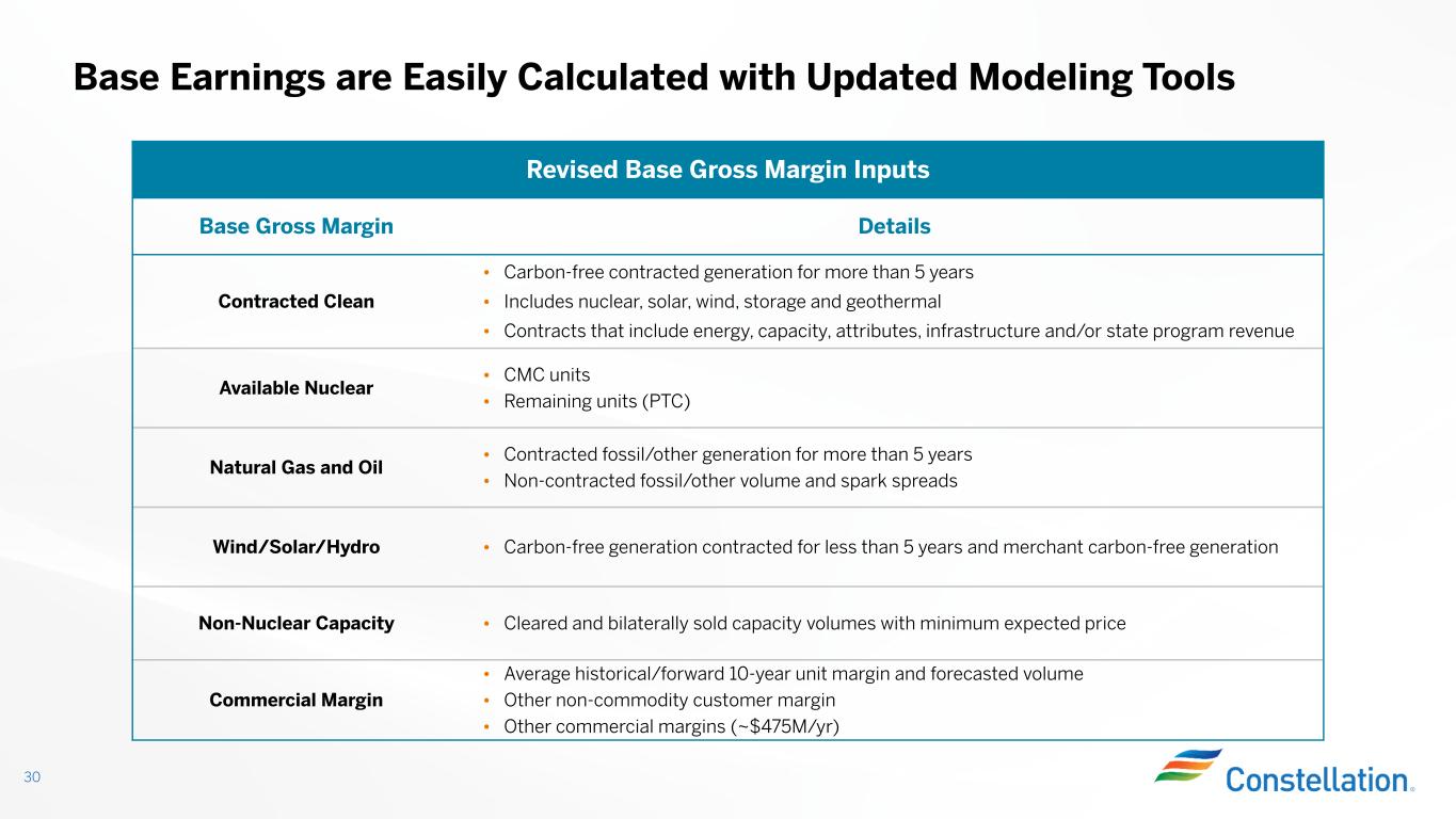 Base Earnings are Easily Calculated with Updated Modeling Tools 30 Revised Base Gross Margin Inputs DetailsBase Gross Margin • Carbon-free contracted generation for more than 5 years • Includes nuclear, solar, wind, storage and geothermal • Contracts that include energy, capacity, attributes, infrastructure and/or state program revenue Contracted Clean • CMC units • Remaining units (PTC) Available Nuclear • Contracted fossil/other generation for more than 5 years • Non-contracted fossil/other volume and spark spreads Natural Gas and Oil • Carbon-free generation contracted for less than 5 years and merchant carbon-free generation Wind/Solar/Hydro • Cleared and bilaterally sold capacity volumes with minimum expected priceNon-Nuclear Capacity • Average historical/forward 10-year unit margin and forecasted volume • Other non-commodity customer margin • Other commercial margins (~$475M/yr) Commercial Margin