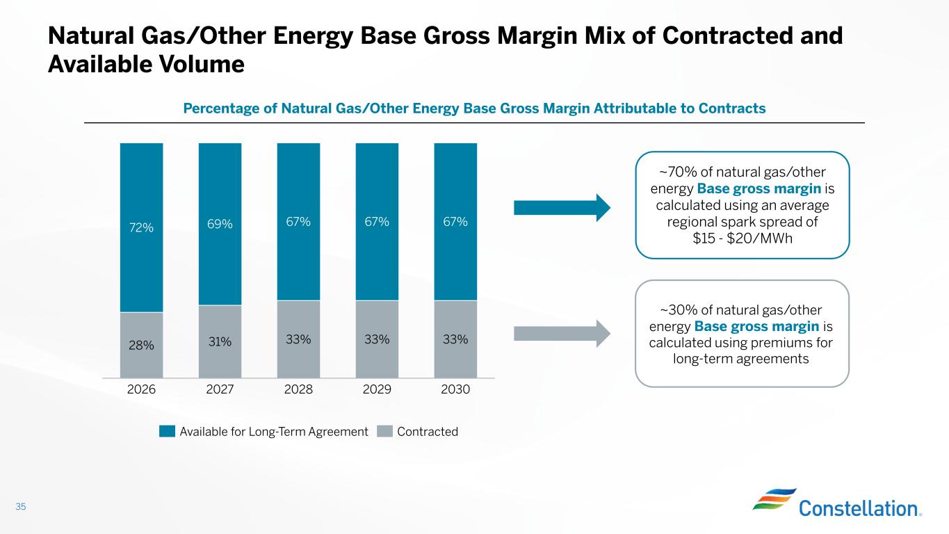 CCGT Fleet Offers Near-Term Downside Protection with Upside Optionality 34 Multiple Paths to Sell Output of Our Gas Fleet Near-Term Volatility is Limited by Hedges and Contracted Sales while Maintaining Optionality 20% 80% 2026 20% 70% 10% 2027 20% 60% 20% 2028 20% 35% 45% 2029 Contracted Offtake MWhs Hedged MWhs Open MWhs • Block power sales • Heat rate call options • Load sales to end customers • Long-term agreements with customers that provide earnings visibility at premium prices • Opportunity to capture higher value as contracts renew over time • Does not include grid access deals Note: Reflects percentage of total portfolio CCGT MWhs rounded to the nearest 5%