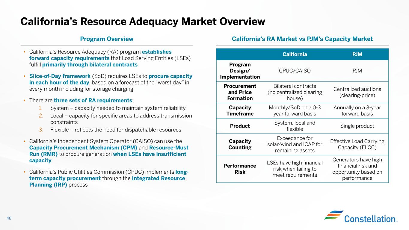 Key Operating Metrics for the CCGT and Cogen Fleet (1) 47 55.1% 60.1% 57.8% 55.2% 2022 2023 2024 2025 Equivalent Forced Outage Factor (EFOF) (2) Equivalent Availability Factor (EAF) (2)Capacity Factor 7.5% 4.7% 4.6% 5.6% 2022 2023 2024 2025 80.2% 84.4% 82.4% 82.6% 2022 2023 2024 2025 Percentage of time units are operating during the year Percentage of time that generation could be provided after all types of outages and deratings Measures the hours generation was unavailable due to forced events (1) Includes combined Constellation and Calpine fleet, excluding Calpine assets pending divestiture (2) Calculation adjusted to exclude events outside management’s control