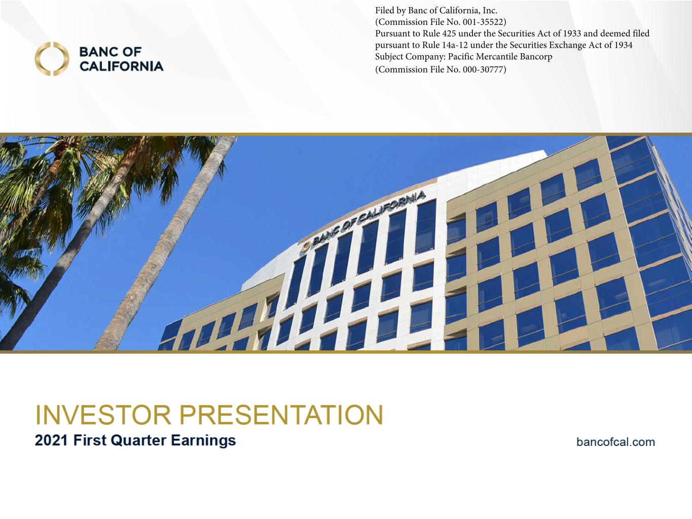 Filed by Banc of California, Inc. (Commission File No. 001-35522) Pursuant to Rule 425 under the Securities Act of 1933 and deemed filed pursuant to Rule 14a-12 under the Securities Exchange Act of 1934 Subject Company: Pacific Mercantile Bancorp (Commission File No. 000-30777)