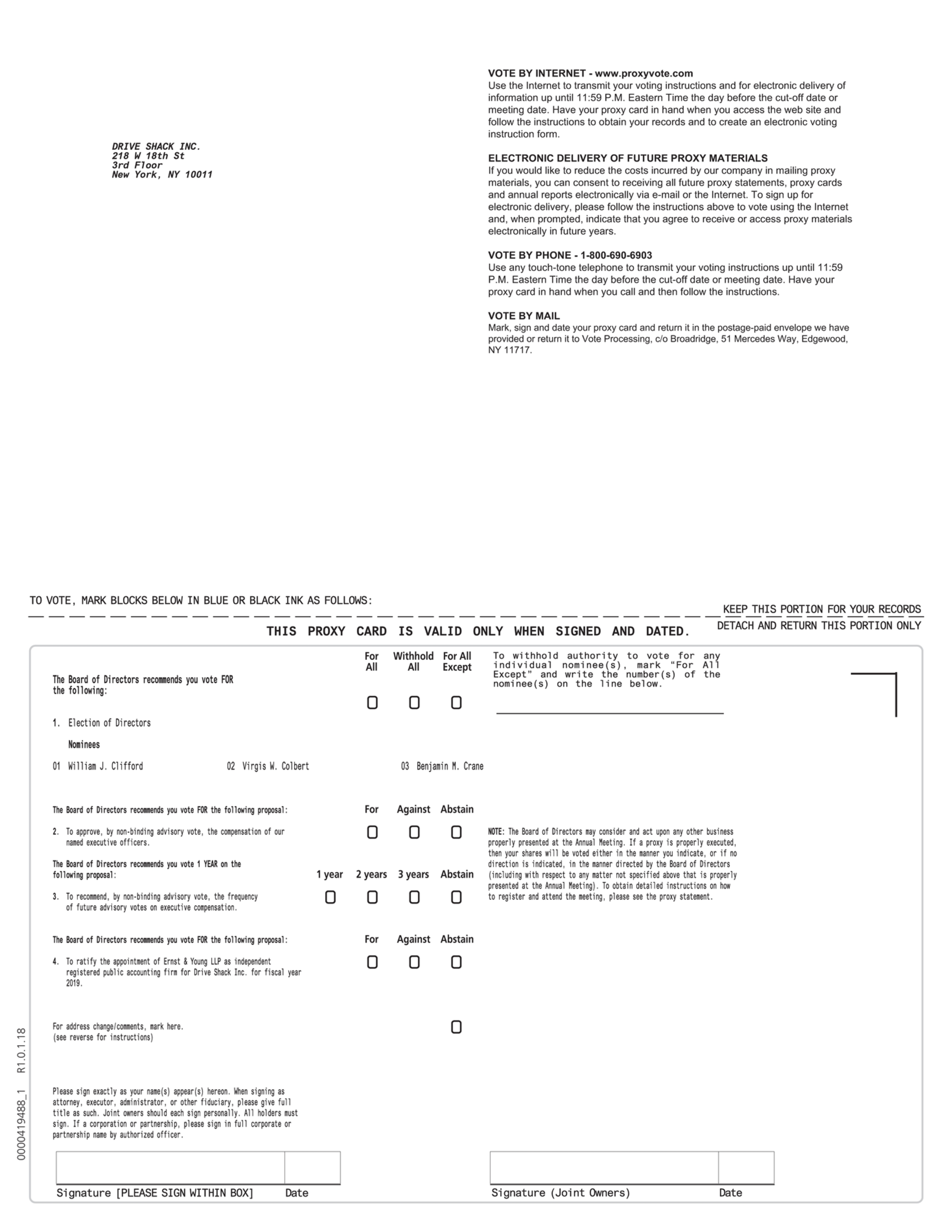 | (iv) | a proposal to approve the appointment of Ernst & Young LLP as independent registered public accounting firm for Drive Shack Inc. for fiscal year 2019; and |