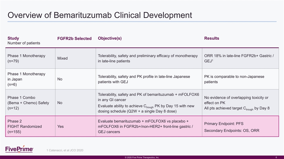 Bemarituzumab Targeted Therapy for FGFR2b+ Tumors November 10, 2020 © 2020 Five Prime Therapeutics, Inc.Bemarituzumab Targeted Therapy for FGFR2b+ Tumors November 10, 2020 © 2020 Five Prime Therapeutics, Inc.