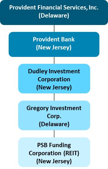 The Company's wholly owned subsidiary, Provident Bank, is the sole shareholder of Dudley Investment Corporation, a New Jersey corporation ("Dudley"). Dudley is the sole shareholder of Gregory Investment Corp., a Delaware corporation ("Gregory"), which owns approximately 89% of PSB Funding Corporation, incorporated in New Jersey ("PSB Funding"). Gregory Investment owns 100% of the common stock of PSB Funding, and there are over 100 preferred shareholders. PSB Funding is a domestic REIT, which files Form 1120 REIT that is not part of the consolidated Form 1120 filed by the Company and its subsidiaries. The relationship of each of these corporate entities is as follows: