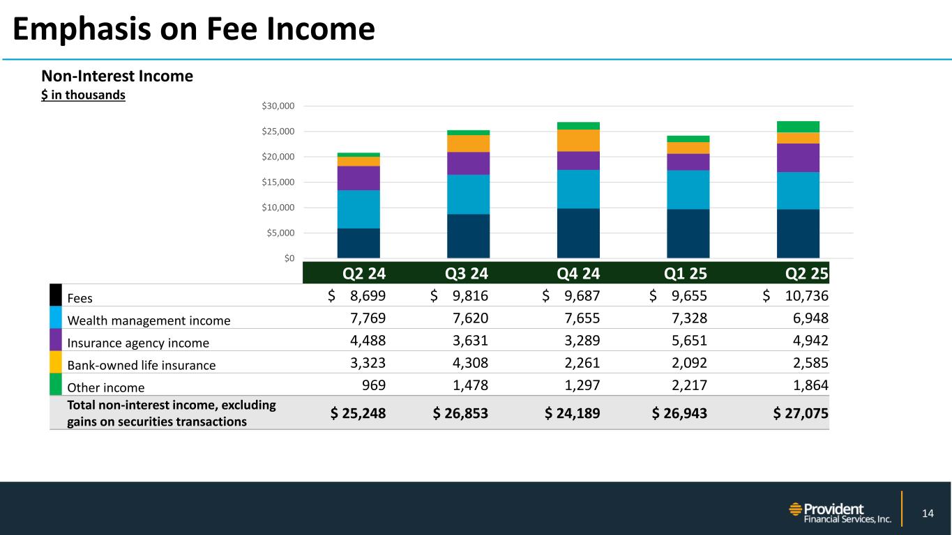 NYSE: PFS $0 $5,000 $10,000 $15,000 $20,000 $25,000 $30,000 Q1 24 Q2 24 Q3 24 Q4 24 Q1 25 Emphasis on Fee Income Non-Interest Income $ in thousands 14 Q2 24 Q3 24 Q4 24 Q1 25 Q2 25 Fees $ 8,699 $ 9,816 $ 9,687 $ 9,655 $ 10,736 Wealth management income 7,769 7,620 7,655 7,328 6,948 Insurance agency income 4,488 3,631 3,289 5,651 4,942 Bank-owned life insurance 3,323 4,308 2,261 2,092 2,585 Other income 969 1,478 1,297 2,217 1,864 Total non-interest income, excluding gains on securities transactions $ 25,248 $ 26,853 $ 24,189 $ 26,943 $ 27,075