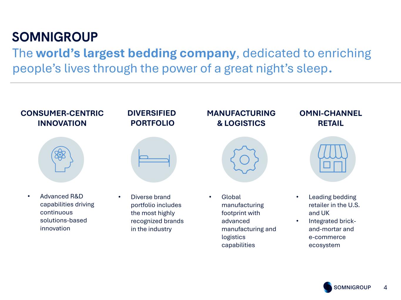 High-level strategic direction • Corporate governance • Capital allocation Tactical go-to-market strategy • Operational excellence • Passionate customer service SOMNIGROUP’S STRUCTURE 3
