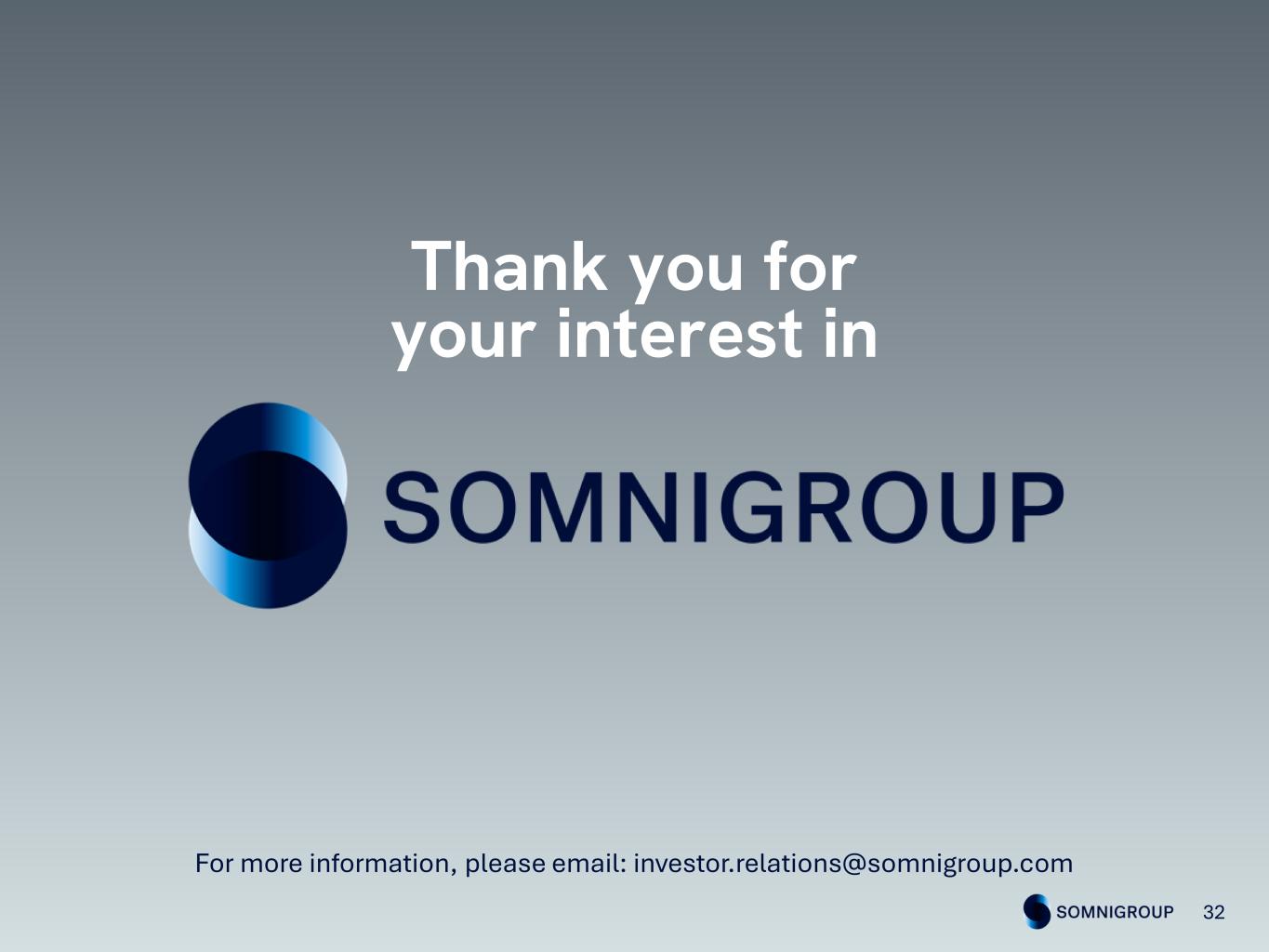 Thank you for your interest in For more information, please email: investor.relations@somnigroup.com 32