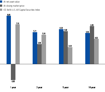 value will fluctuate and a shareholder may sustain losses. Further, the fund’s performance at net asset value (NAV) is different from the fund’s performance at closing market price because the closing