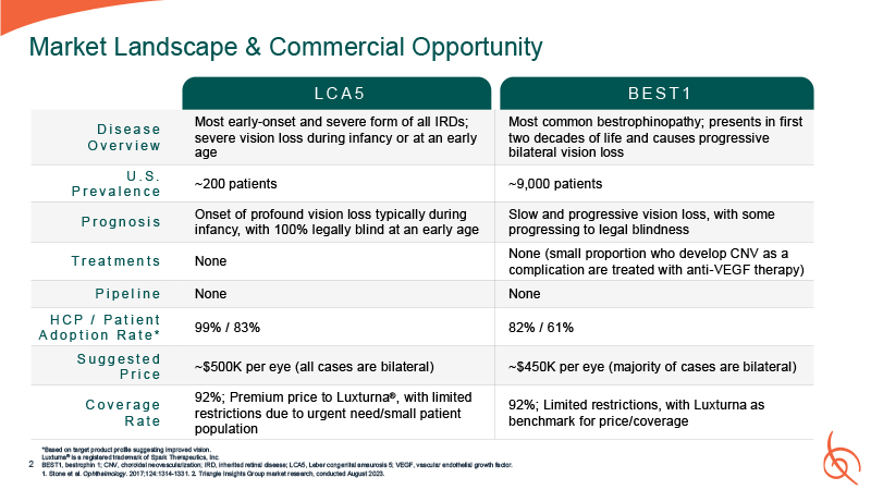 POC  Other  Nonclinical: gene expression and function-based potency assay development  *includes $1,000 license milestone  **includes $3,250 license milestone  BEST1, bestrophin 1; BLA, Biologics License Application; CMC, chemistry,