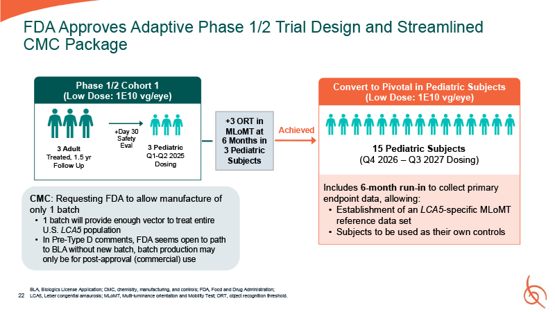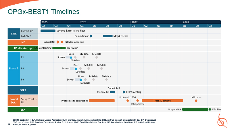 Total  $10,600  $384  $6,410  $21,644  K e y P r o g r a m A s s u m p t i o n s  IND  File Aug 2025  Phase 1  FPI: Oct 2025  LPI: Jan 2026  Pivotal  FPI: Q1 2027  LPI: Q1 2028  BLA  Q3 2028  CMC  Initiate full GMP lot after human