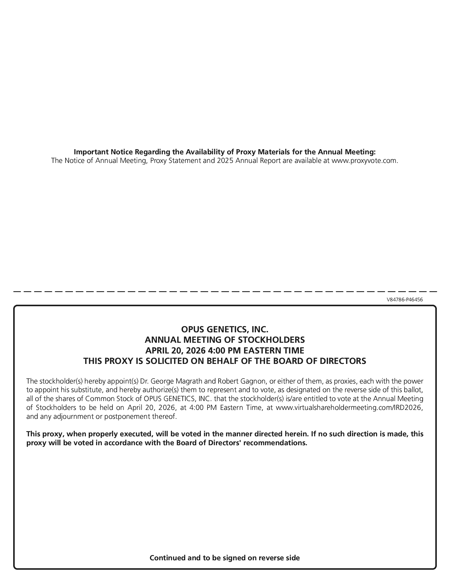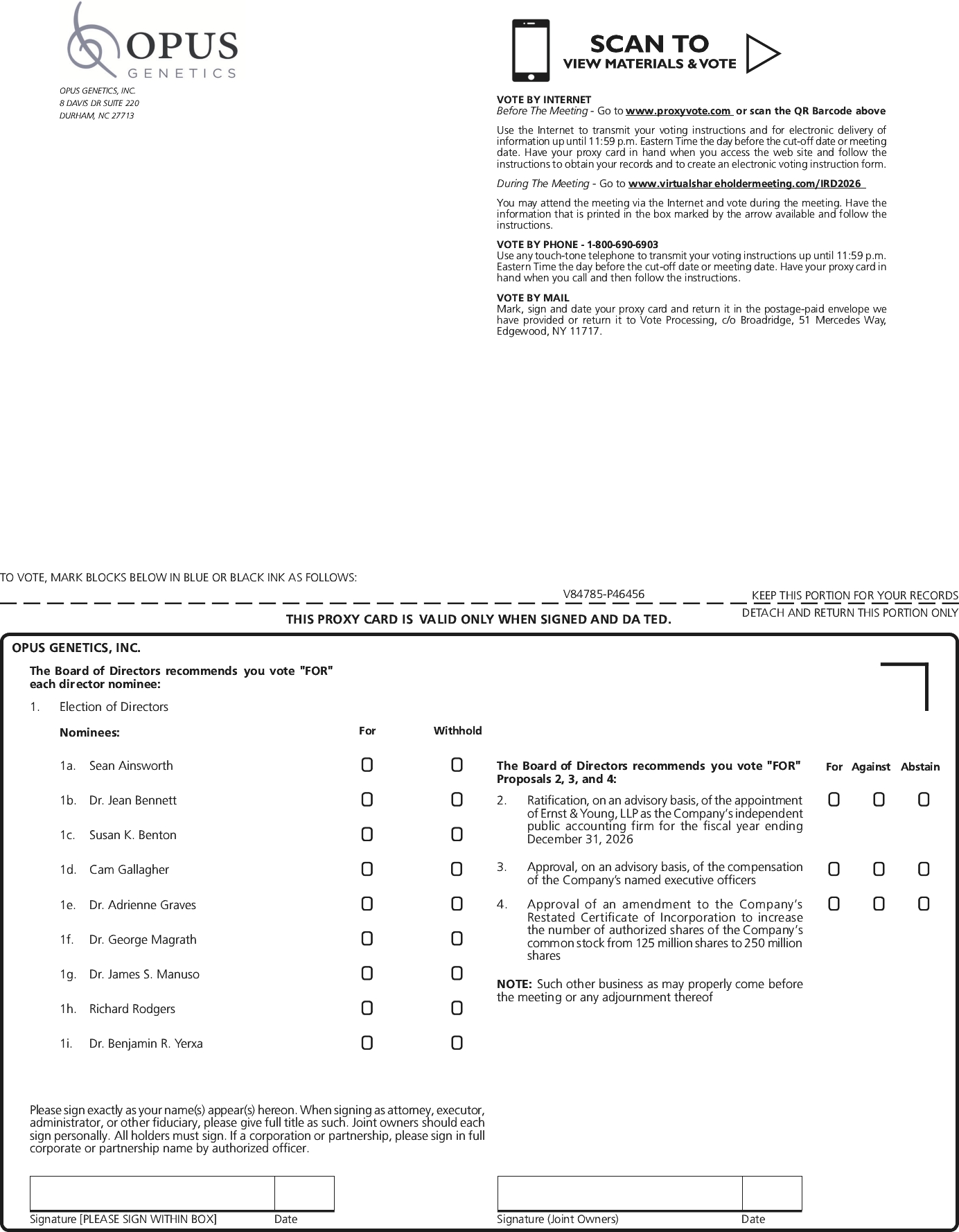 Opus Genetics, Inc | A-1 | 2026 Proxy Statement | ||||
