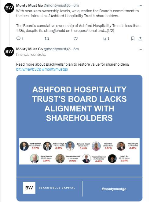Blackwells, Blackwells Onshore I LLC, and Jason Aintabi (collectively, the “Participants”) are participants in the solicitation of proxies from the stockholders of Ashford Hospitality Trust, Inc. (the “Company”) for the Company’s 2024 Annual Meeting of Stockholders. On May 2, 2024, the Participants filed with the U.S. Securities and Exchange Commission (the “SEC”) their definitive proxy statement and accompanying GOLD proxy card in connection with their solicitation of proxies from the stockholders of the Company.