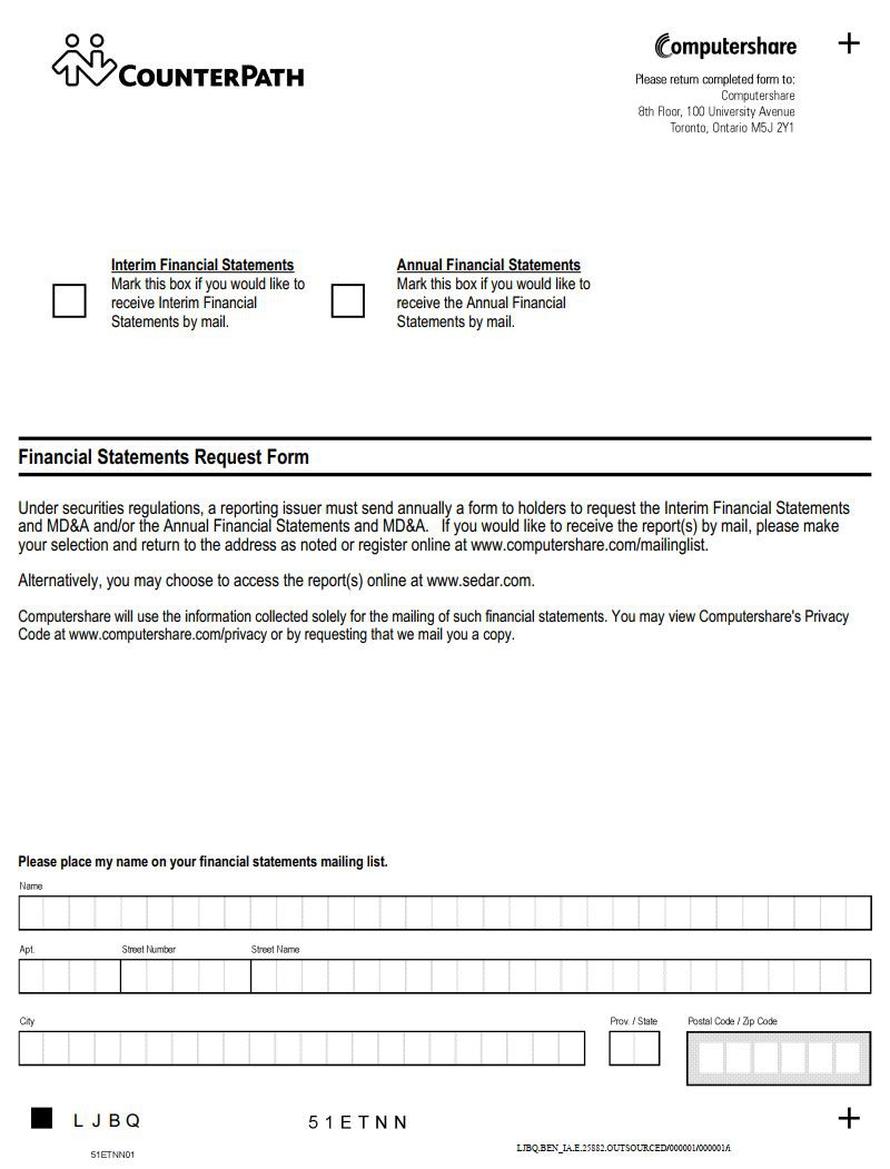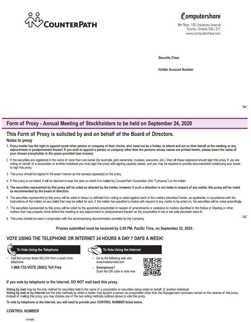 TO THE STOCKHOLDERS OF COUNTERPATH CORPORATION:
