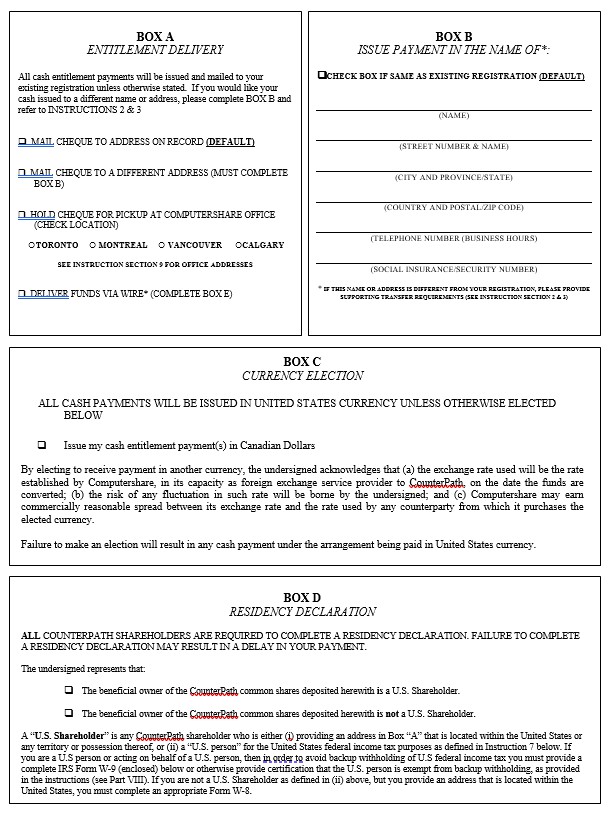 On behalf of the CounterPath board of directors, we thank you for your support of CounterPath Corporation and appreciate your consideration of this matter.
